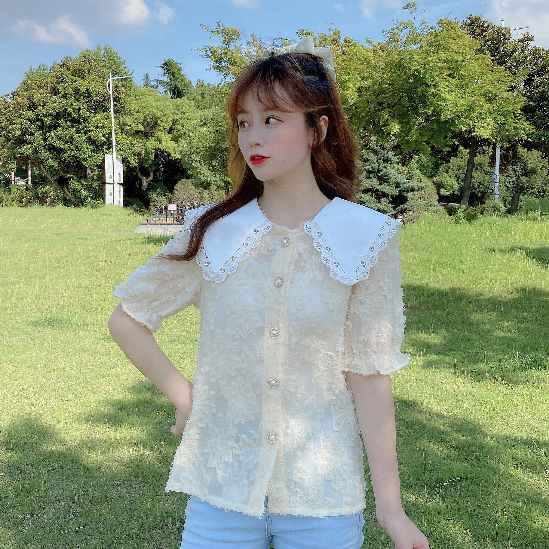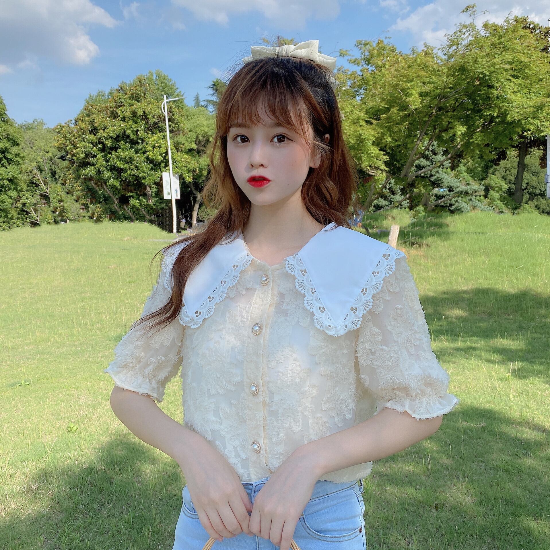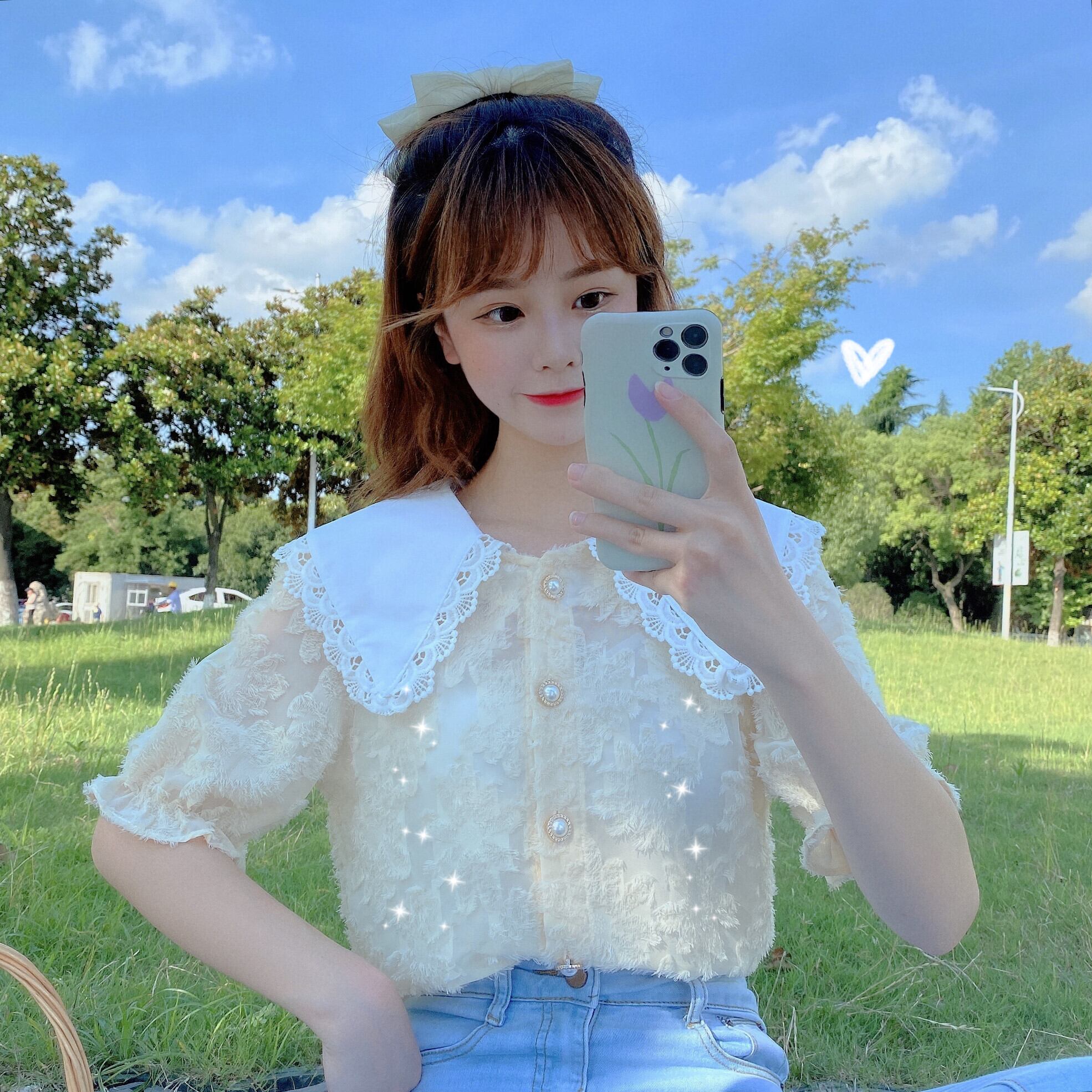 ✞ シャツブラウスレーススリーブスリム スウィート ✞ゴスロリ SM ミリ 甘ロリ クラロリ 和ロリ エレガント 黒ロリ 姫ロリ 華ロリ BB-BB0878476