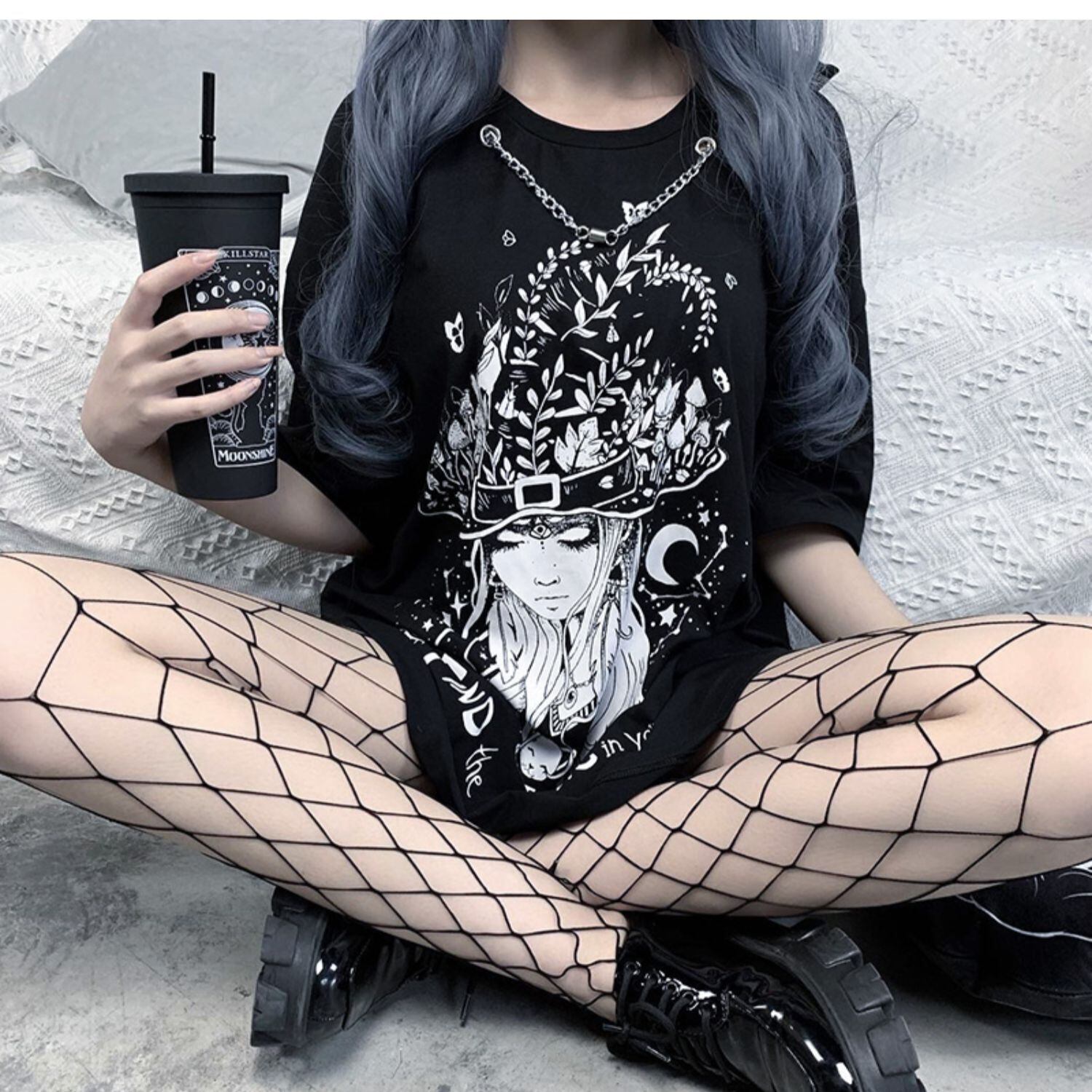 ✞✝✞ ダークブラックスリーブTシャツ シャツブラウスきれいめ☆チェーン プリント柄 ✞✝✞ ゴスロリ SM ミリ 甘ロリ クラロリ 和ロリ エレガント 黒ロリ 姫ロリ 華ロリ AA-AA6921207