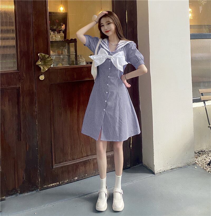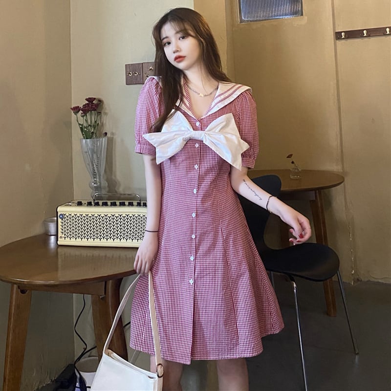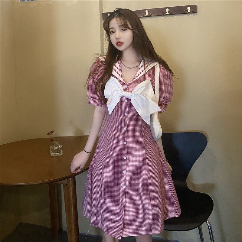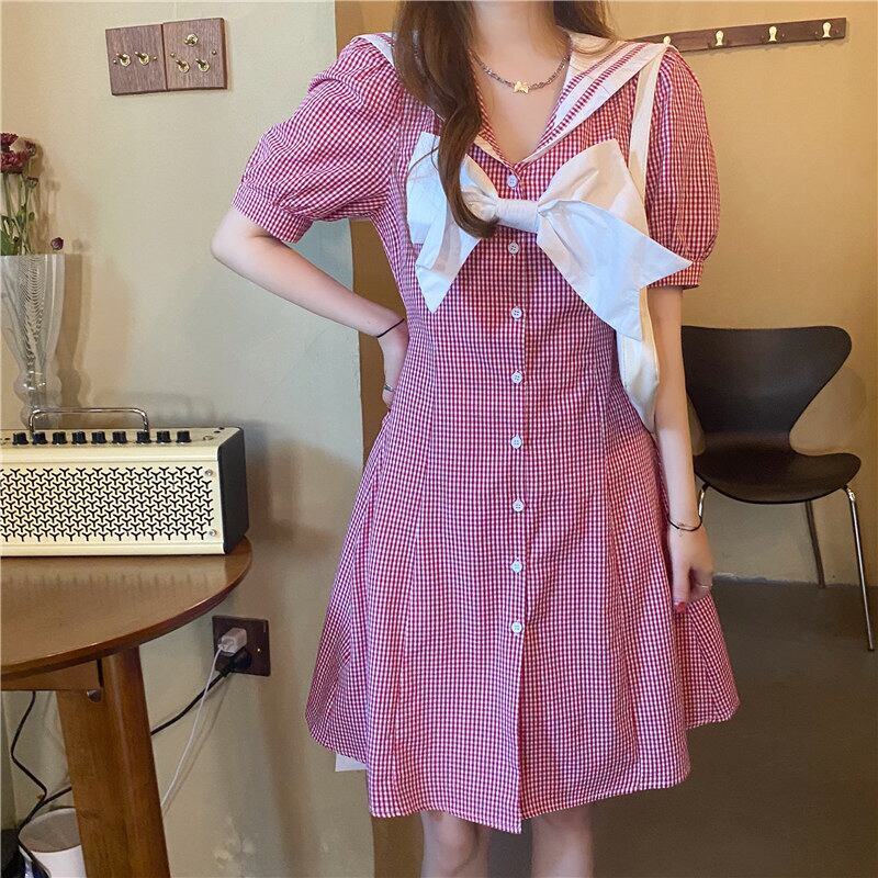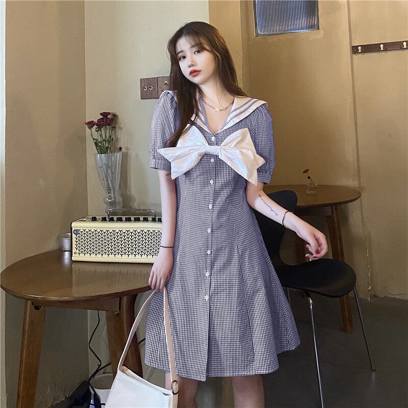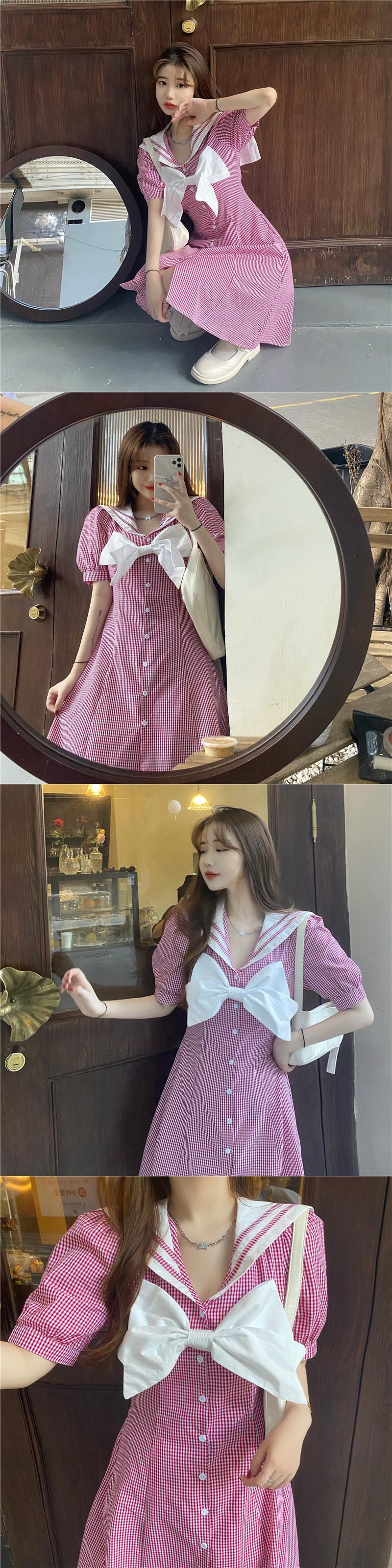 ✞ きれいめ☆ネイビースリーブスカート チェック柄リボン スウィート ✞ゴスロリ SM ミリ 甘ロリ クラロリ 和ロリ エレガント 黒ロリ 姫ロリ 華ロリ BB-BB6243495