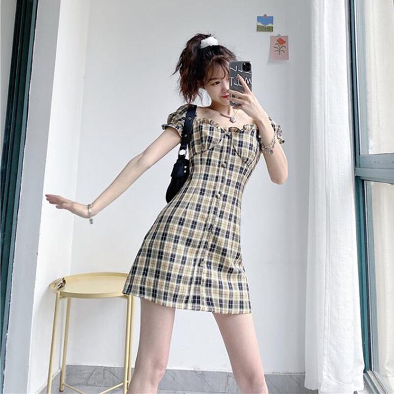✞ きれいめ☆ショートスリーブチェック柄ワンピースドレスOP スカート レトロ スクウェア ✞ゴスロリ SM ミリ 甘ロリ クラロリ 和ロリ エレガント 黒ロリ 姫ロリ 華ロリ BB-BB5769287
