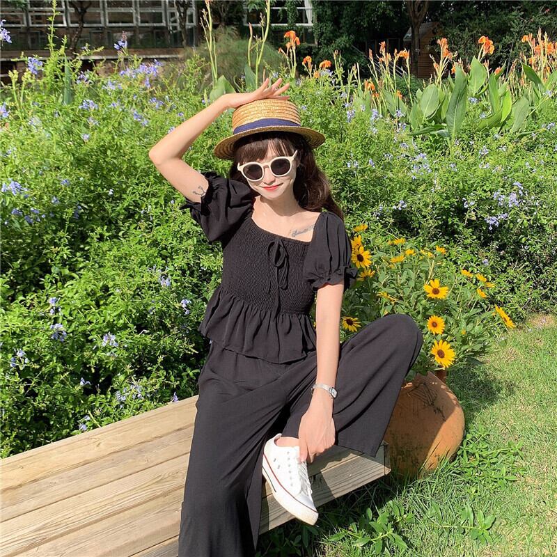 ✞ プリーツスリムスリーブショートトップス パンツ スウィート スクウェア ✞ゴスロリ SM ミリ 甘ロリ クラロリ 和ロリ エレガント 黒ロリ 姫ロリ 華ロリ BB-BB6305334