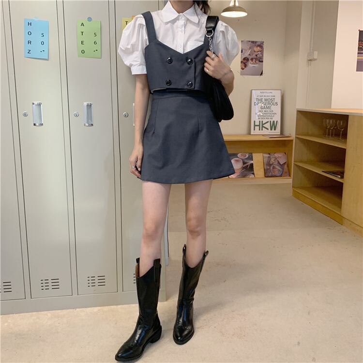 ✞ スリーブシャツブラウス or ショートダブルブレストキャミソールAラインワンピース スカート きれいめ☆ ✞ゴスロリ SM ミリ 甘ロリ クラロリ 和ロリ エレガント 黒ロリ 姫ロリ 華ロリ BB-BB5352836