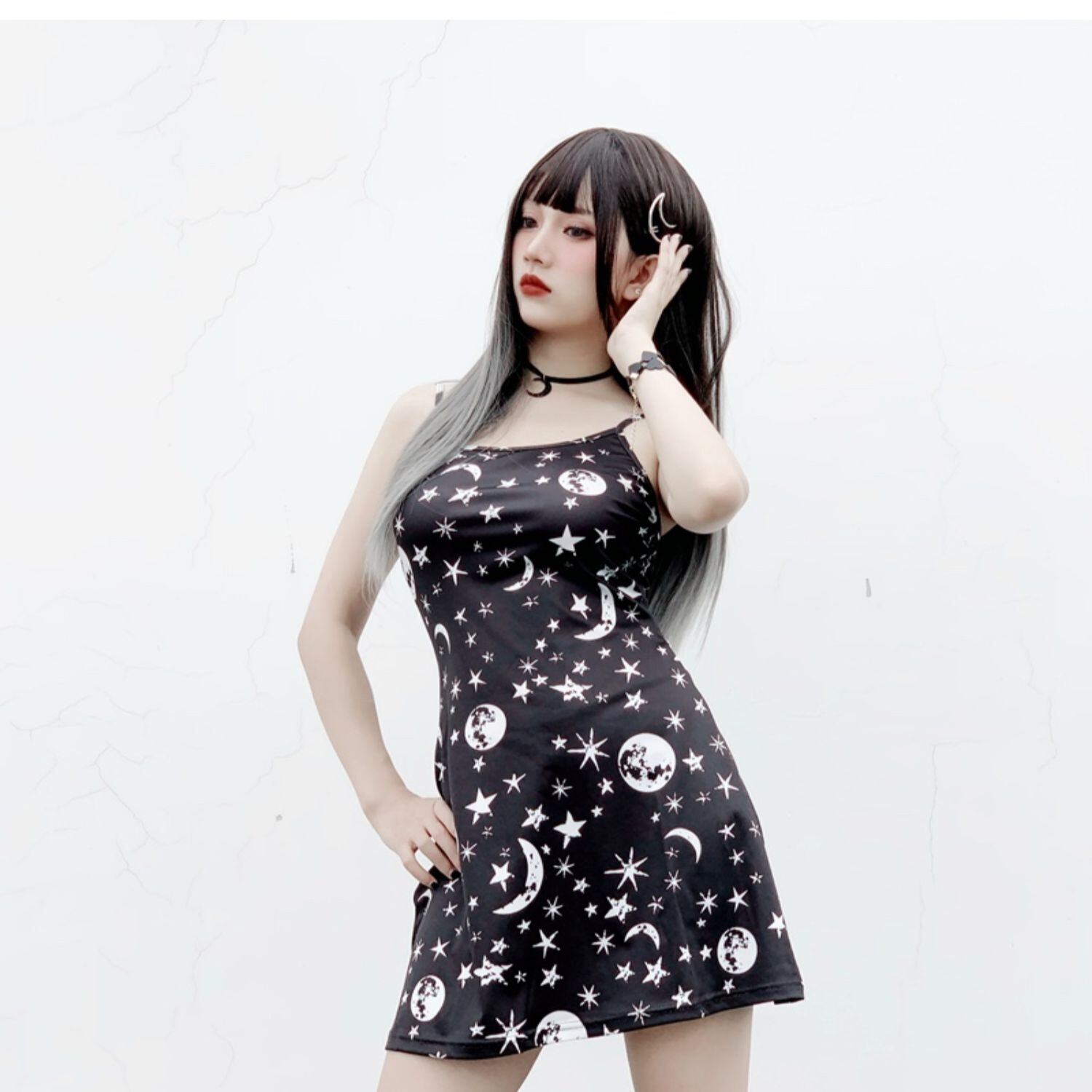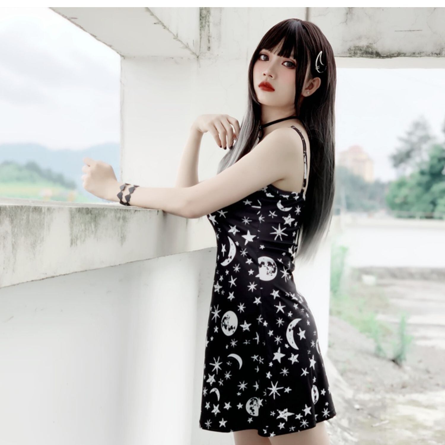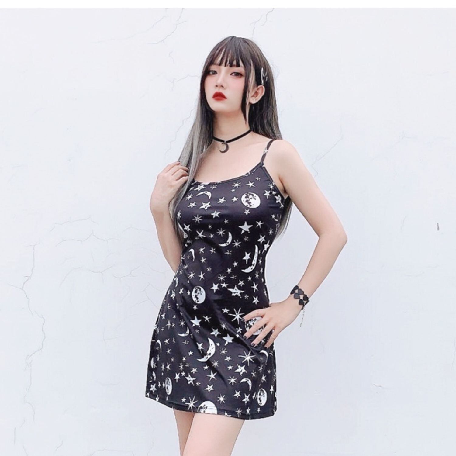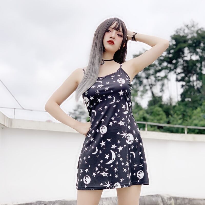 ✞✝✞ ダークライン黒ムーン&スターAラインワンピース スウィート ✞✝✞ ゴスロリ SM ミリ 甘ロリ クラロリ 和ロリ エレガント 黒ロリ 姫ロリ 華ロリ AA-AA2628374