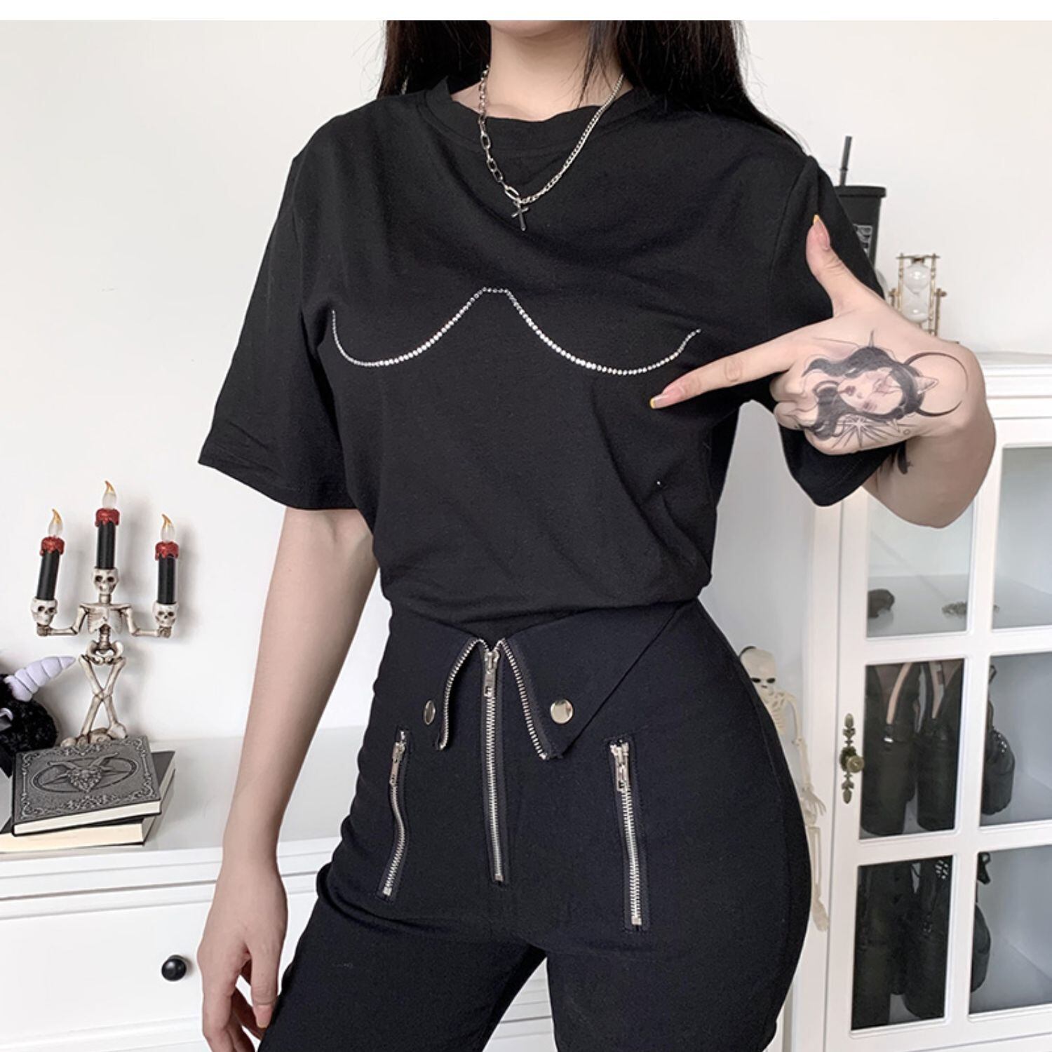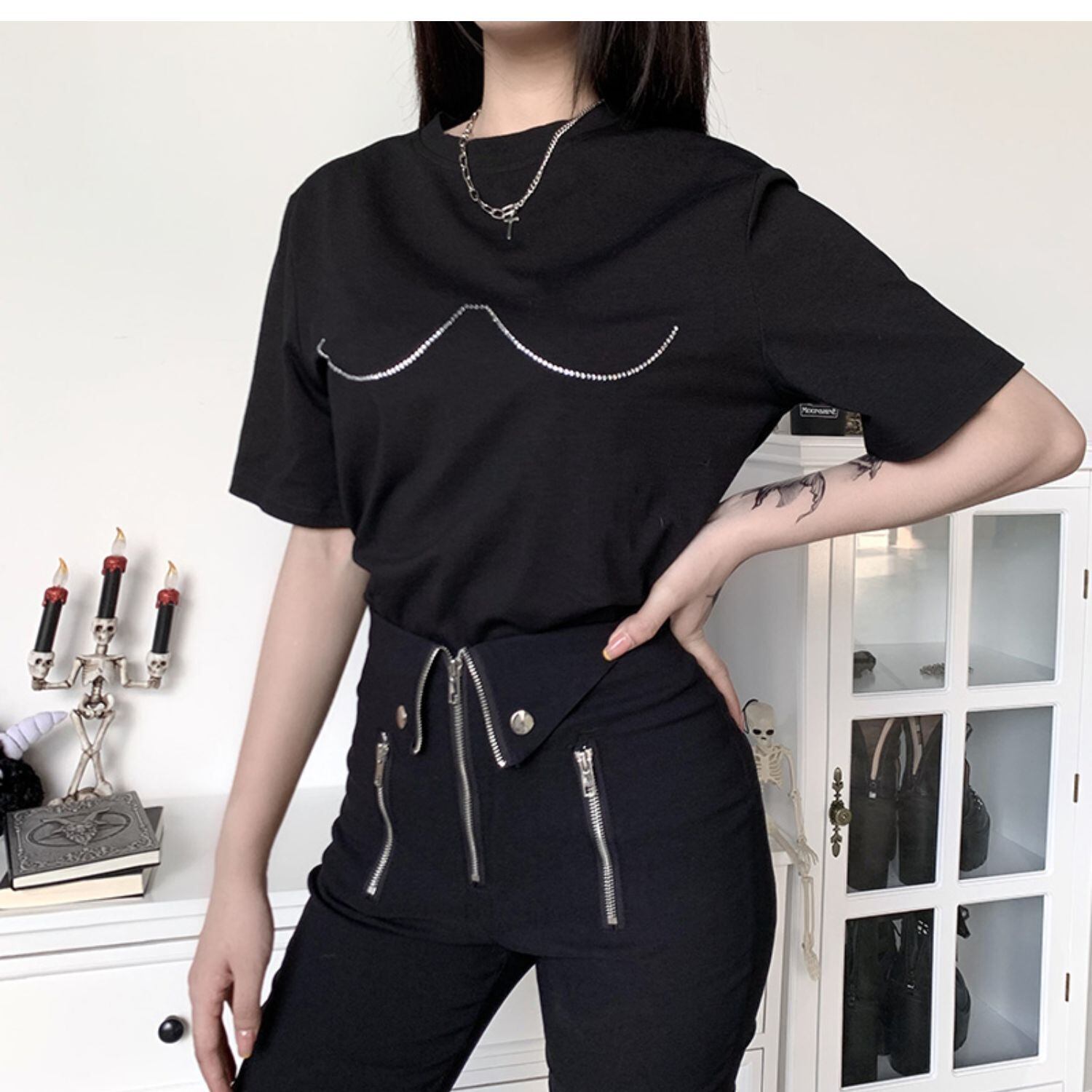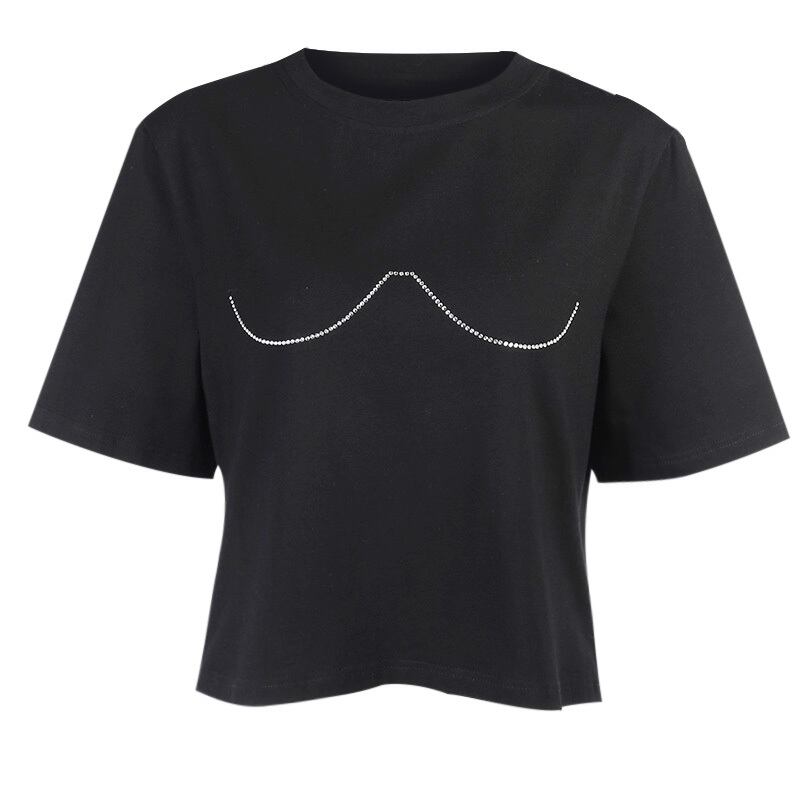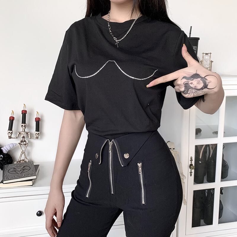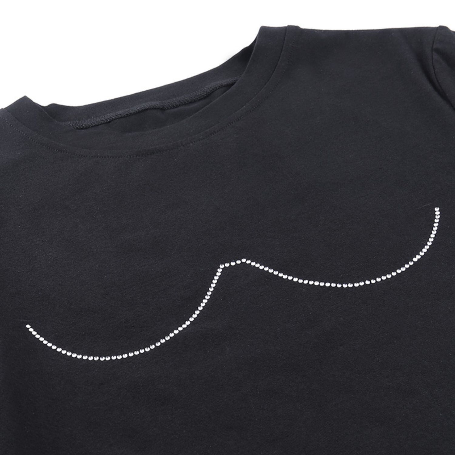 ✞✝✞ 黒ラインストーンTシャツ シャツブラウス♥カワイイ♥ブラックショート コットン ✞✝✞ ゴスロリ SM ミリ 甘ロリ クラロリ 和ロリ エレガント 黒ロリ 姫ロリ 華ロリ AA-AA4314226