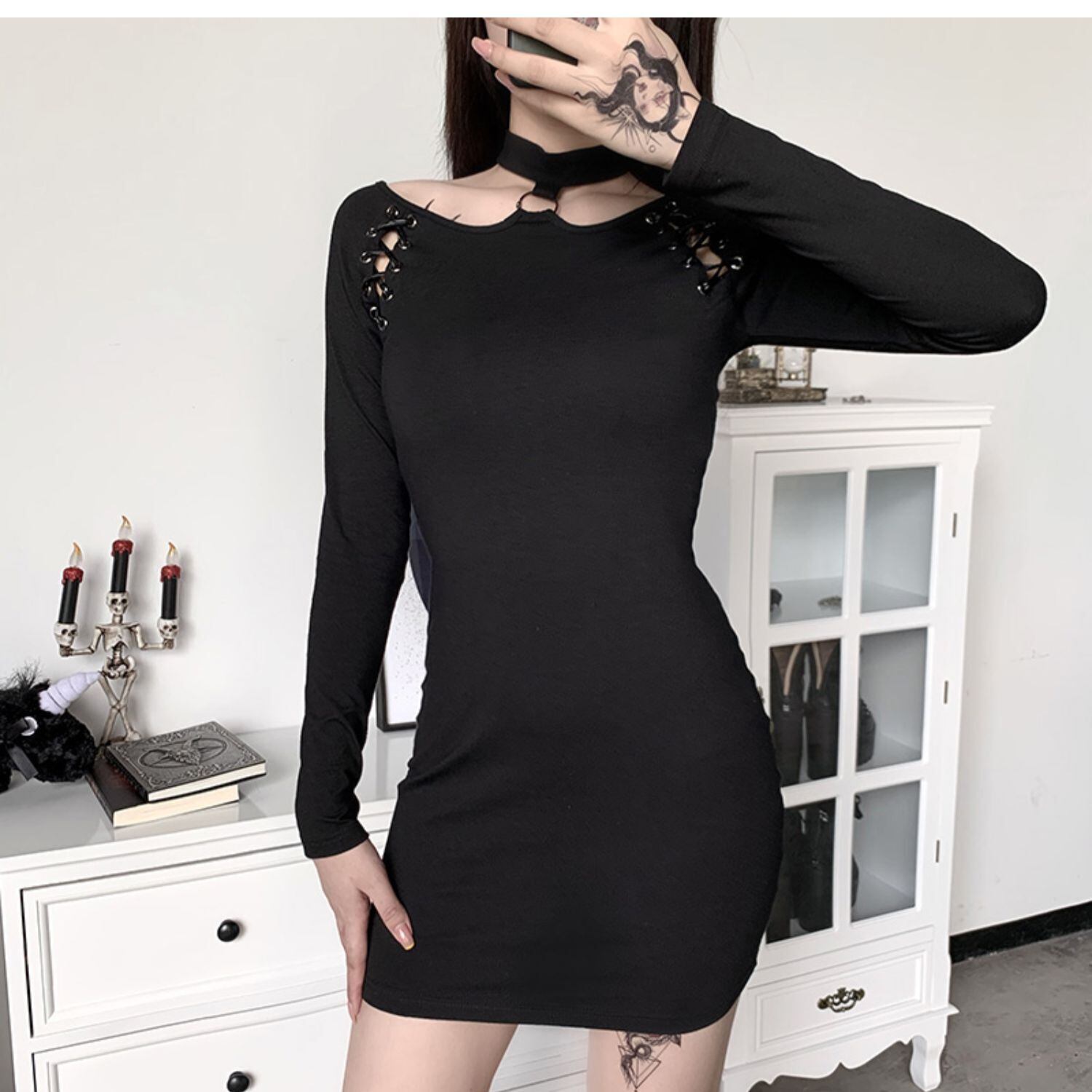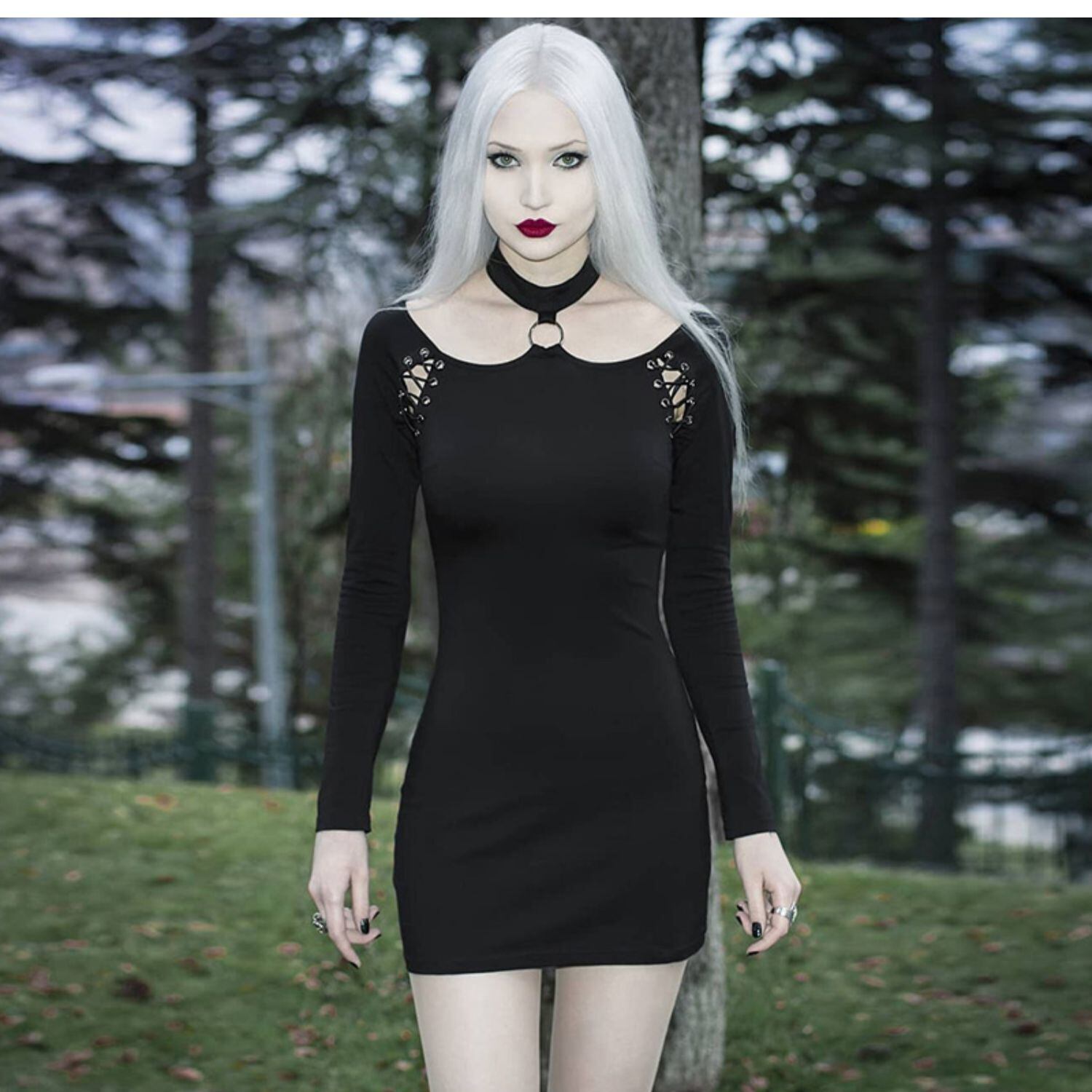 ✞✝✞ デコルテきれいな♥カワイイ♥黒ブラックタイトワンピース チョーカーネックレス ウエストすっきり☆ロング ✞✝✞ ゴスロリ SM ミリ 甘ロリ クラロリ 和ロリ エレガント 黒ロリ 姫ロリ 華ロリ AA-AA2932907