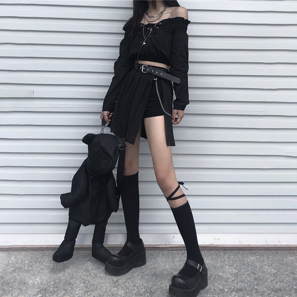 ✞ ダークストラップレスストラップ シャツブラウスレギンス ワンピースプリーツスカート ロング ✞ゴスロリ SM ミリ 甘ロリ クラロリ 和ロリ エレガント 黒ロリ 姫ロリ 華ロリ BB-BB5300755