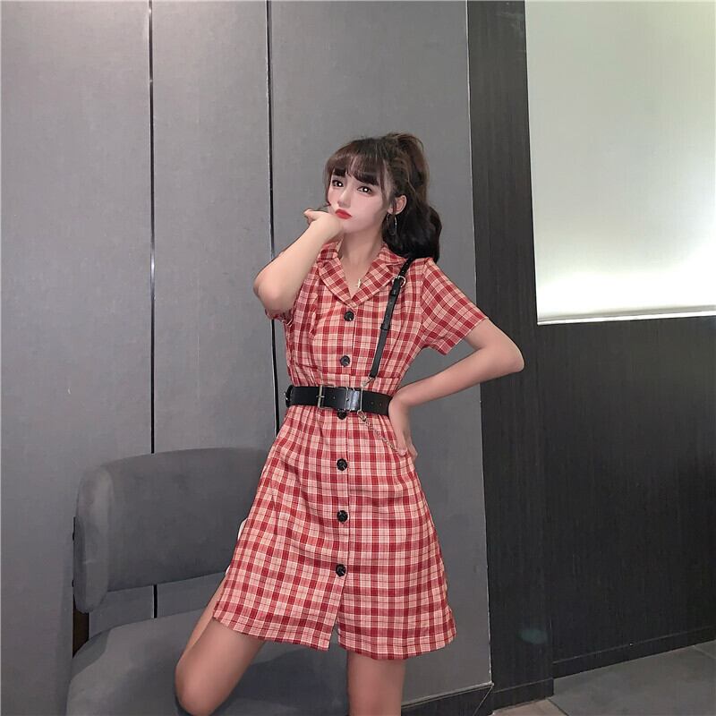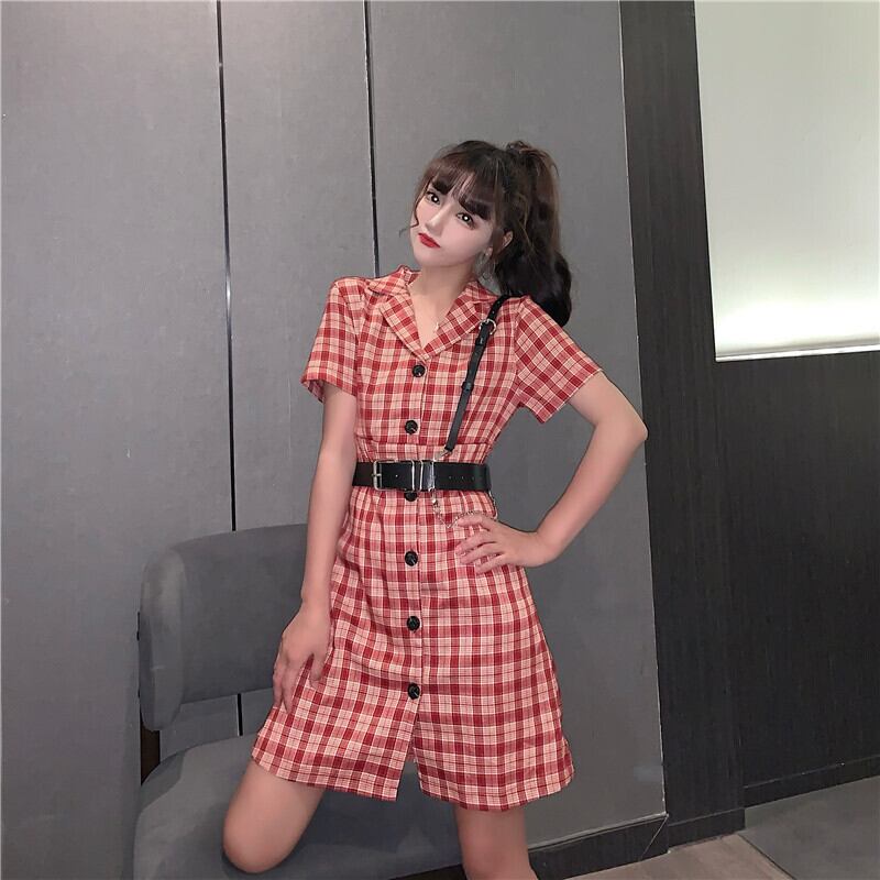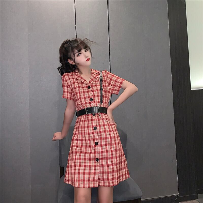 色:ブラックベルトワンピース,格子縞のスカートのシングルピース