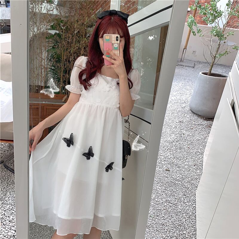 ✞ 花柄メッシュブラックButterflyデザイン 半袖スリーブ♥カワイイ♥ ショート スウィート フラワーデザイン スクウェア ステッチ ✞ゴスロリ SM ミリ 甘ロリ クラロリ 和ロリ エレガント 黒ロリ 姫ロリ 華ロリ BB-BB6768797