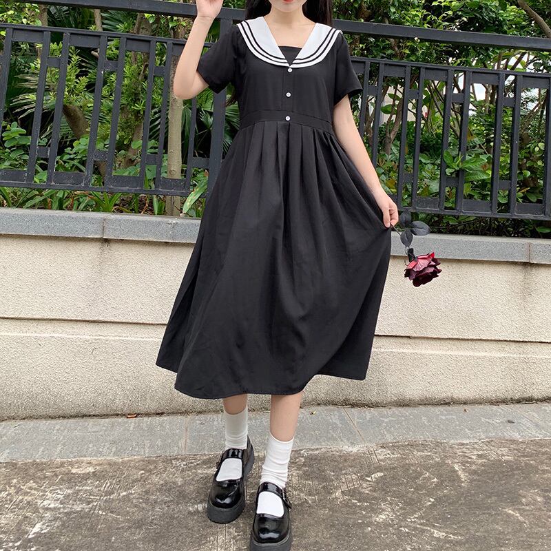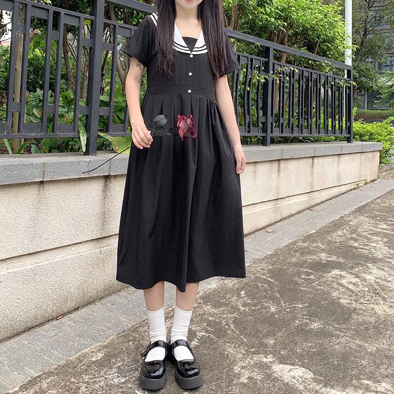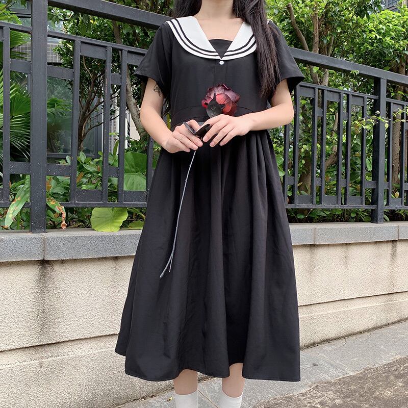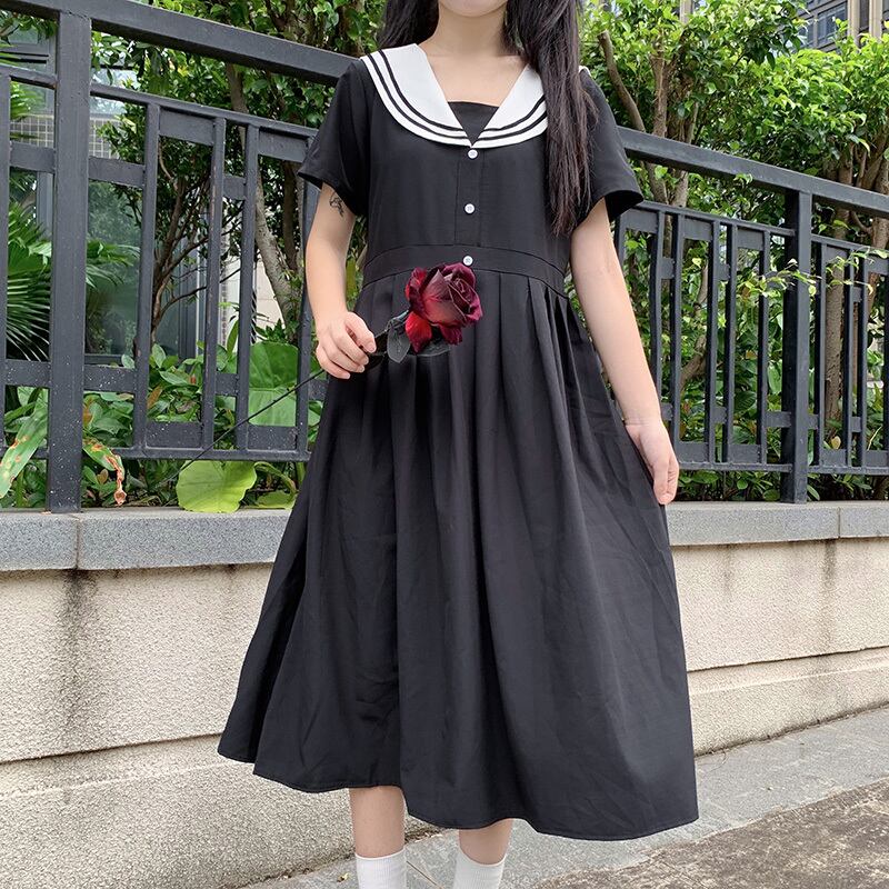 ✞ きれいめ☆スタンダードダークブラックカラーネイビー半袖スリーブプリーツ ショート レトロ ステッチ ✞ゴスロリ SM ミリ 甘ロリ クラロリ 和ロリ エレガント 黒ロリ 姫ロリ 華ロリ BB-BB1650291