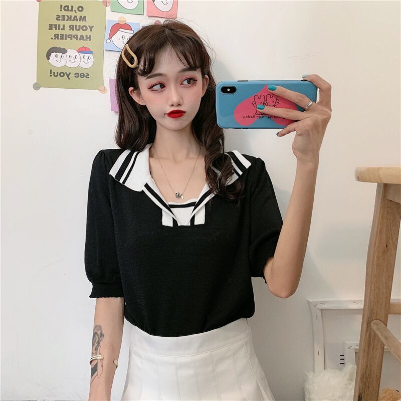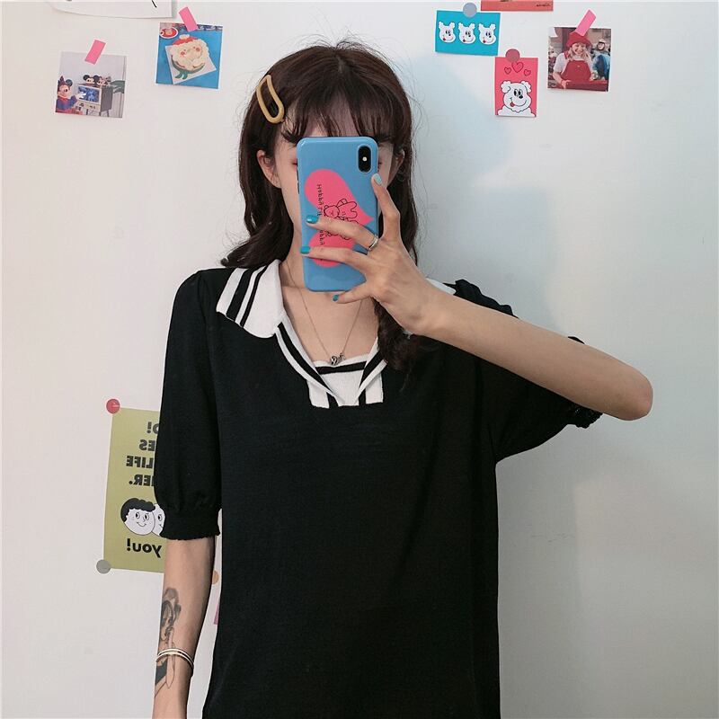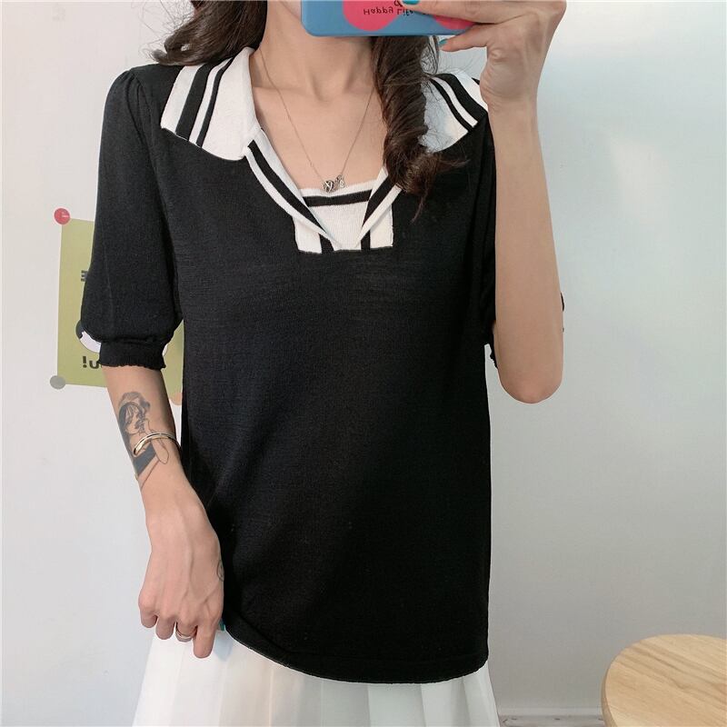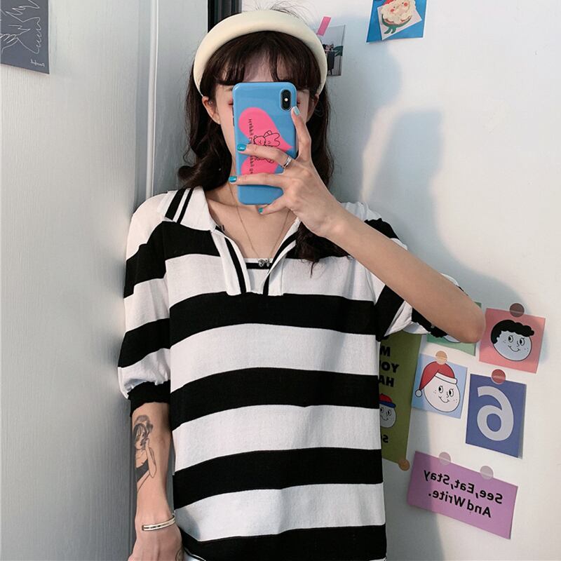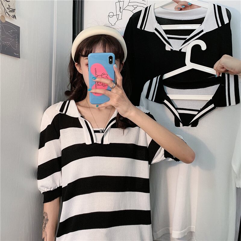 ✞ スリーブニットTシャツ スタンダードストライプトップス レトロ ✞ゴスロリ SM ミリ 甘ロリ クラロリ 和ロリ エレガント 黒ロリ 姫ロリ 華ロリ BB-BB7387444