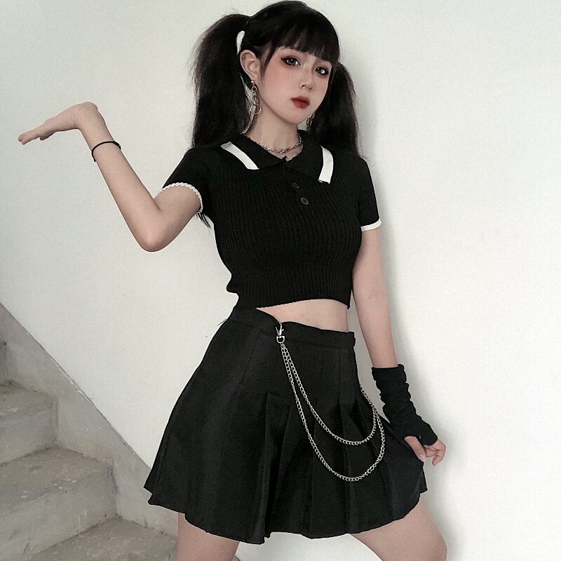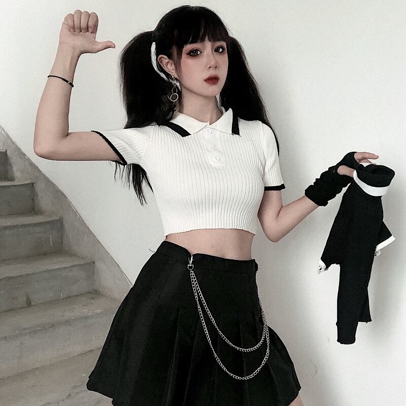 ✞ Tシャツ スリムカラー半袖スリーブ♥カワイイ♥セーター ショート ✞ゴスロリ SM ミリ 甘ロリ クラロリ 和ロリ エレガント 黒ロリ 姫ロリ 華ロリ BB-BB1851758