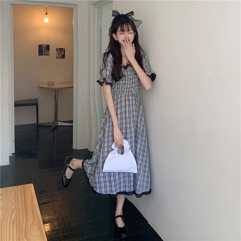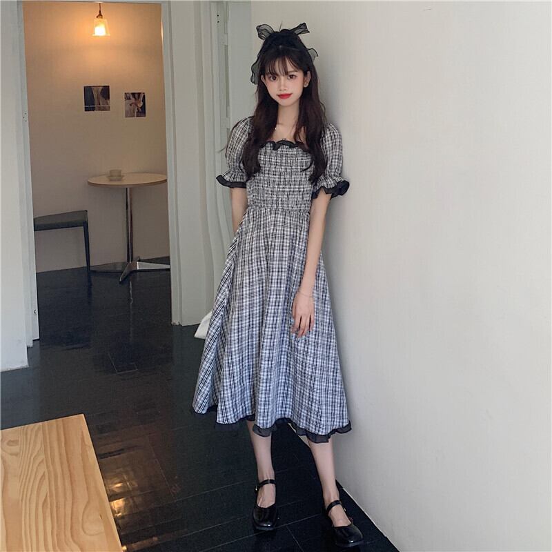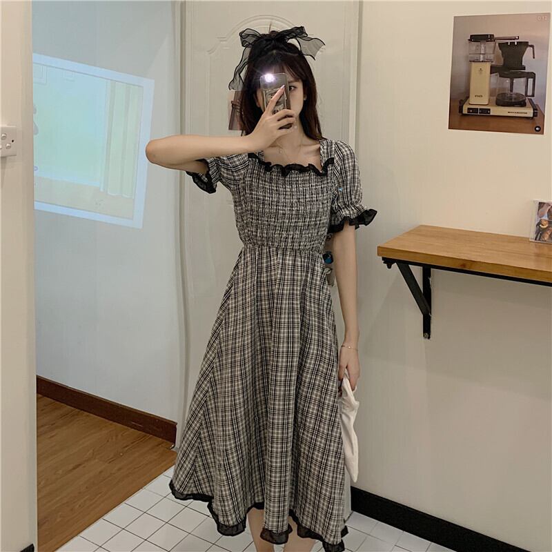 ✞ スタンダードチェック柄ストレッチウエストすっきり☆着痩せ半袖スリーブ ショート レトロ エラスティック 伸縮 スウィート スクウェア ステッチ ✞ゴスロリ SM ミリ 甘ロリ クラロリ 和ロリ エレガント 黒ロリ 姫ロリ 華ロリ BB-BB4580302