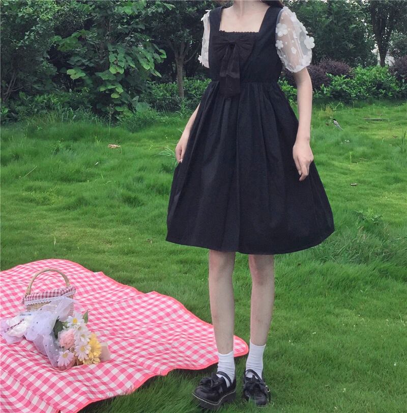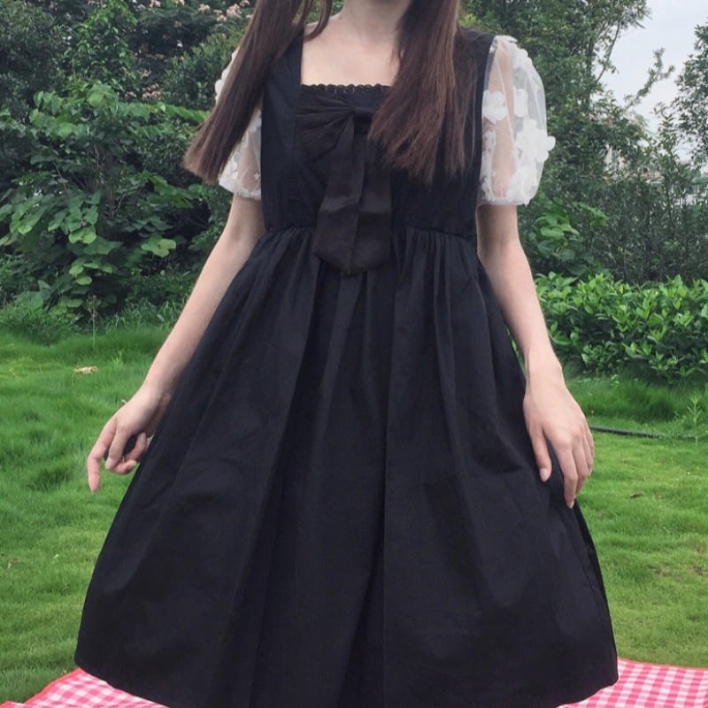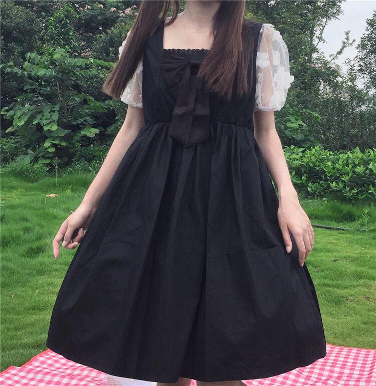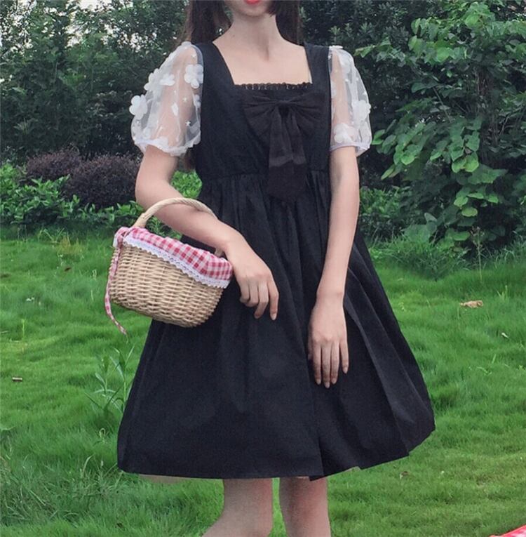 ✞ リボン花柄メッシュ♥カワイイ♥スリーブ スウィート フラワーデザイン スクウェア ✞ゴスロリ SM ミリ 甘ロリ クラロリ 和ロリ エレガント 黒ロリ 姫ロリ 華ロリ BB-BB1731030