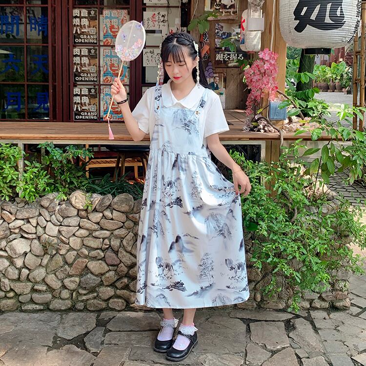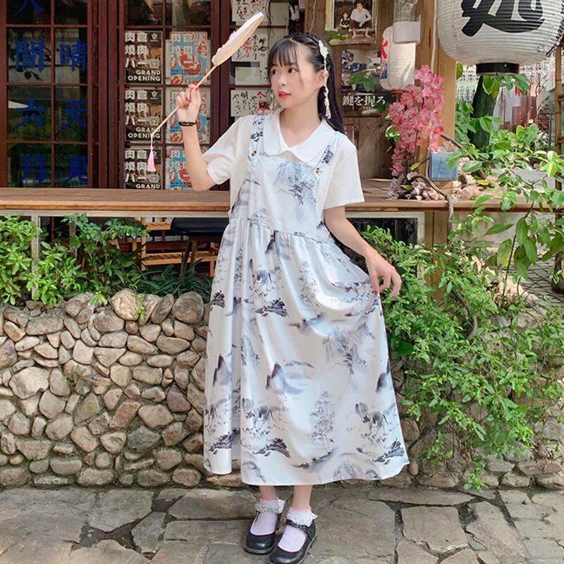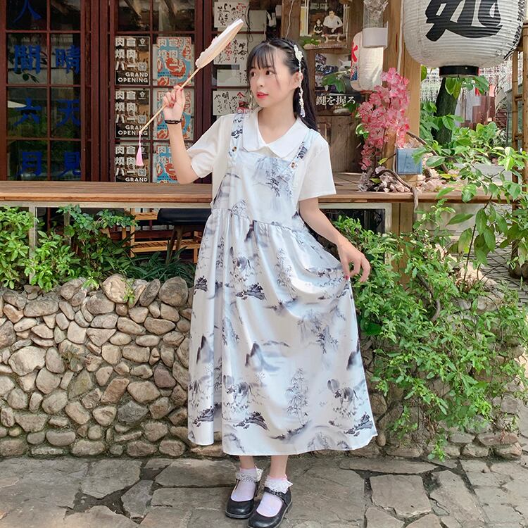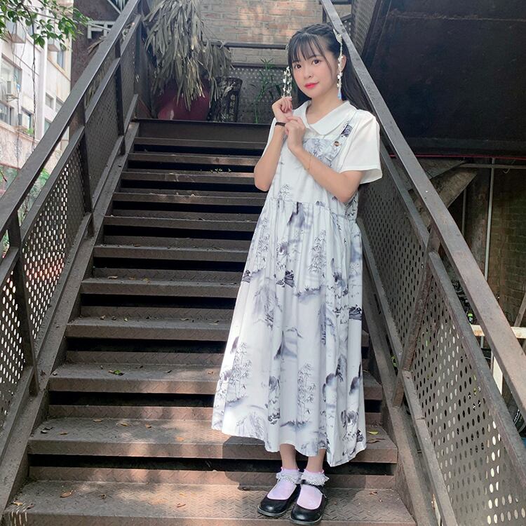 色:白いシフォンシャツ/ワンピース,インクストラップ/単品