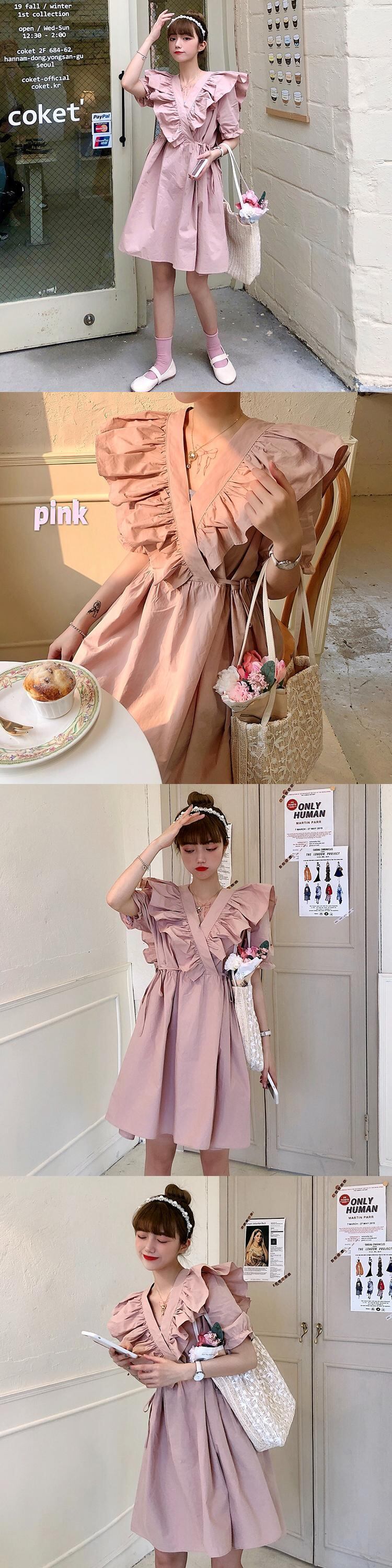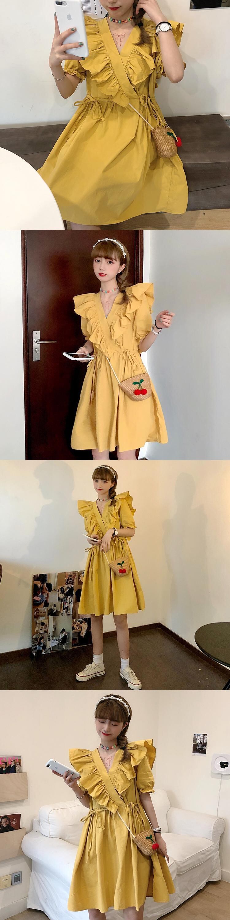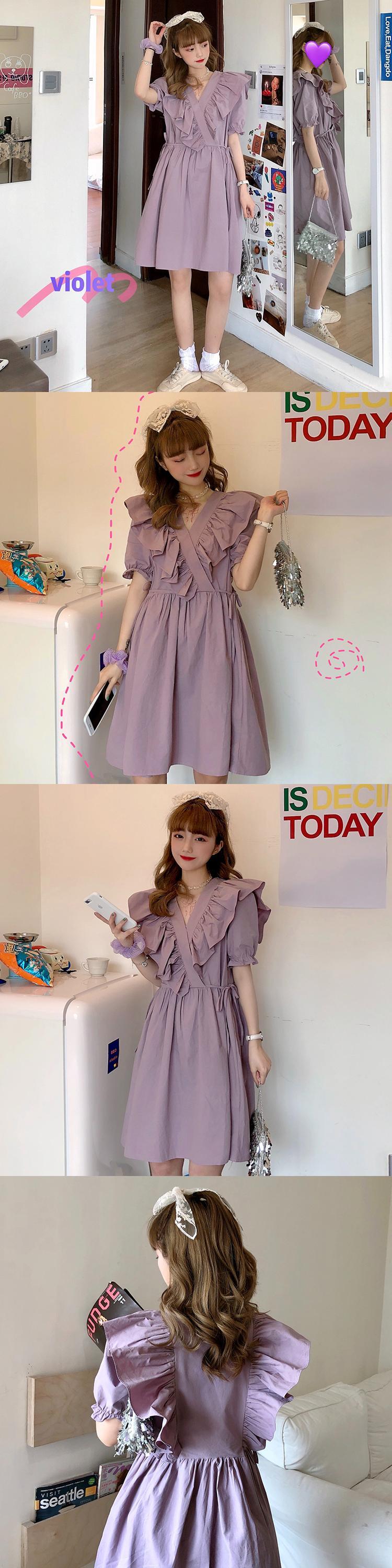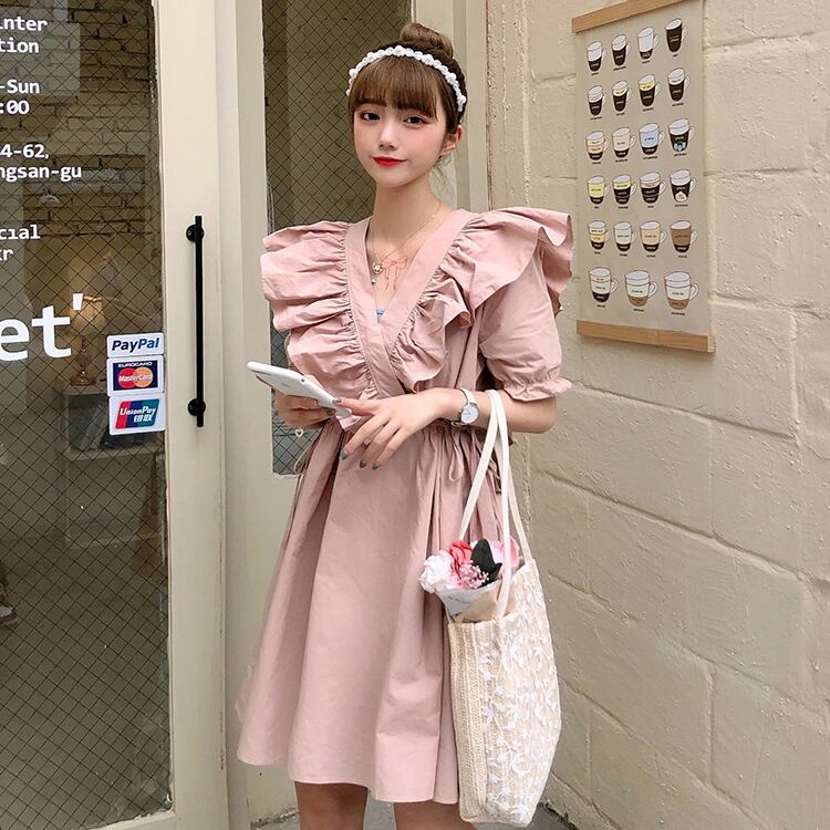 ✞ フリルワンピースドレスOP Vネックラッフルレースシフォン スカート 大人女子☆ レトロ スウィート ステッチ ✞ゴスロリ SM ミリ 甘ロリ クラロリ 和ロリ エレガント 黒ロリ 姫ロリ 華ロリ BB-BB1893903