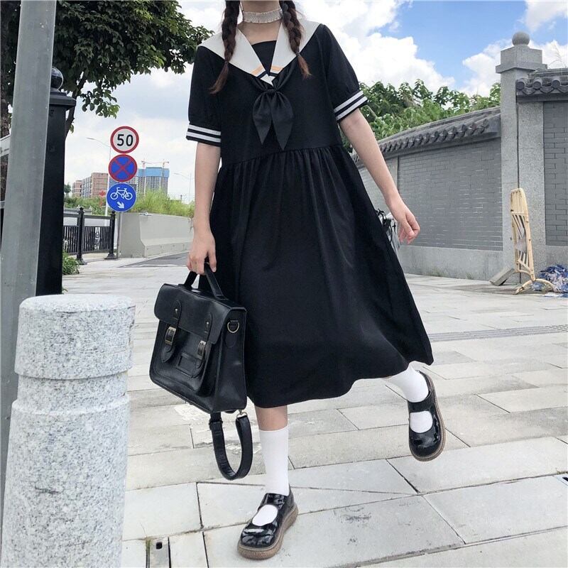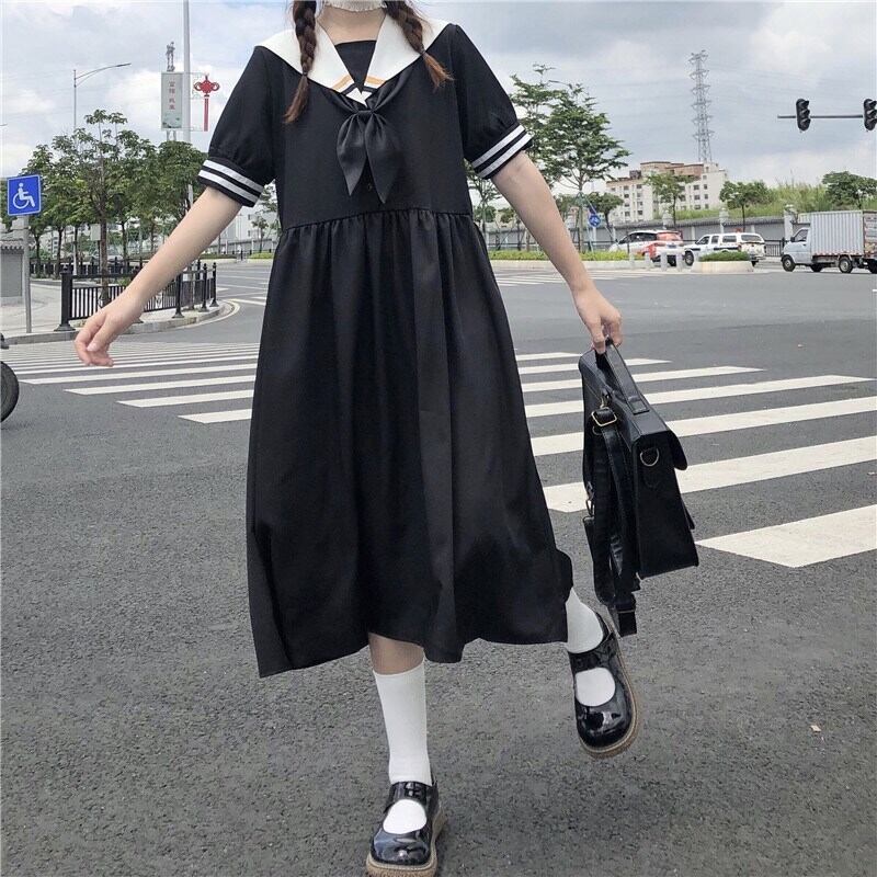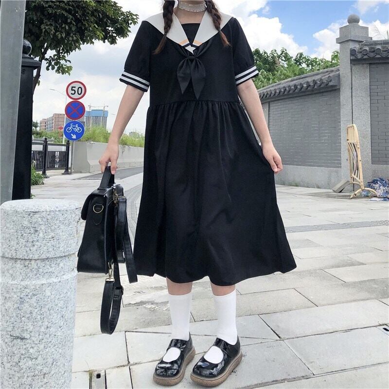 ✞ きれいめ☆ネイビーショートロングリボンスカート 半袖スリーブ スウィート ✞ゴスロリ SM ミリ 甘ロリ クラロリ 和ロリ エレガント 黒ロリ 姫ロリ 華ロリ BB-BB8094491