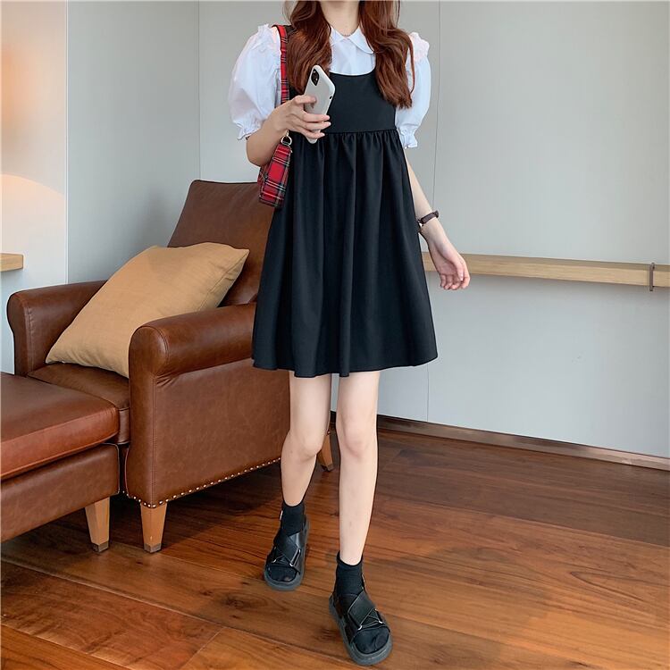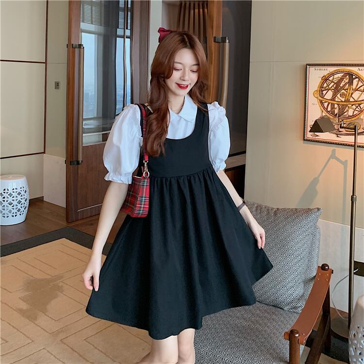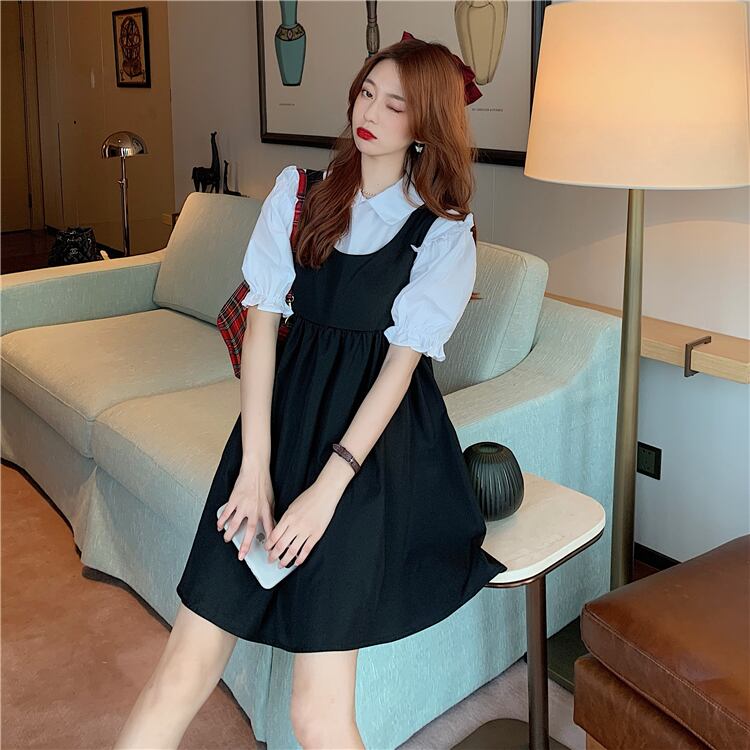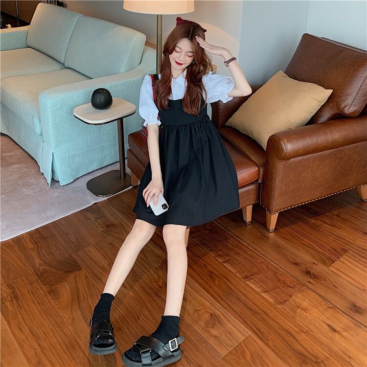 色:白シャツ,ブラックワンピース