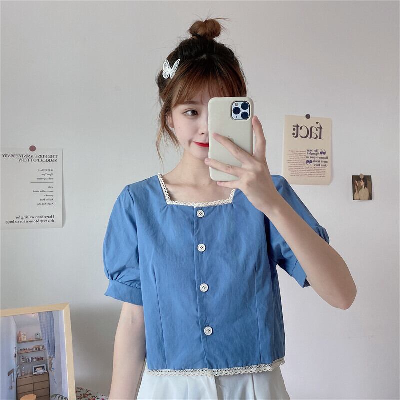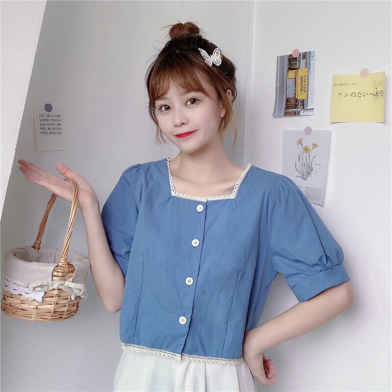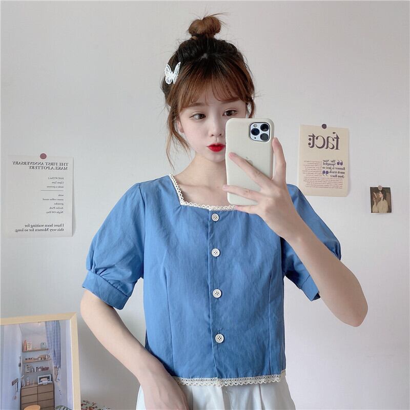 ✞ シャツブラウスショートレース半袖スリーブトップス スクウェア ステッチ ✞ゴスロリ SM ミリ 甘ロリ クラロリ 和ロリ エレガント 黒ロリ 姫ロリ 華ロリ BB-BB3700273