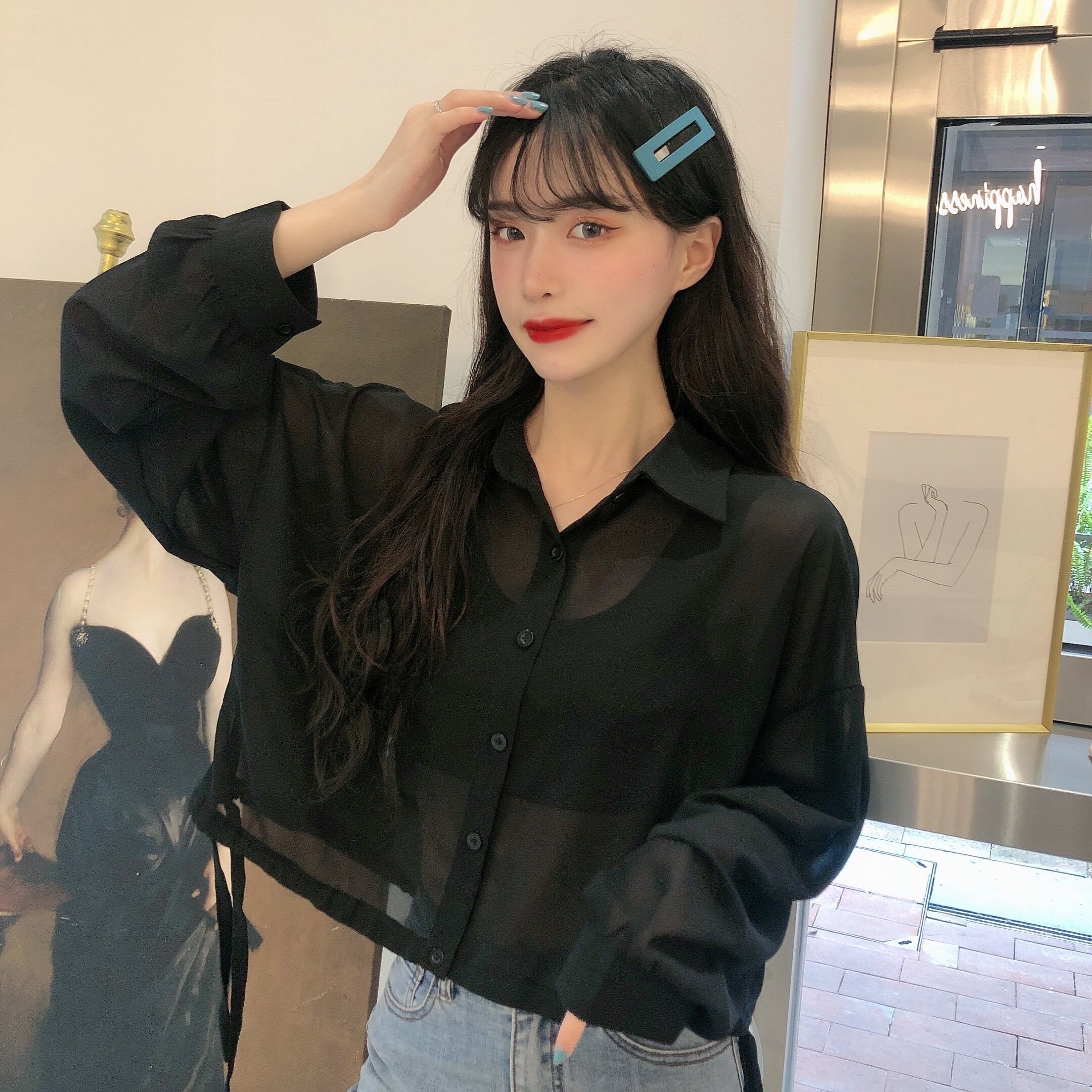 ✞ ♥カワイイ♥ギャザーレースショートシャツブラウス ロング ✞ゴスロリ SM ミリ 甘ロリ クラロリ 和ロリ エレガント 黒ロリ 姫ロリ 華ロリ BB-BB3333161
