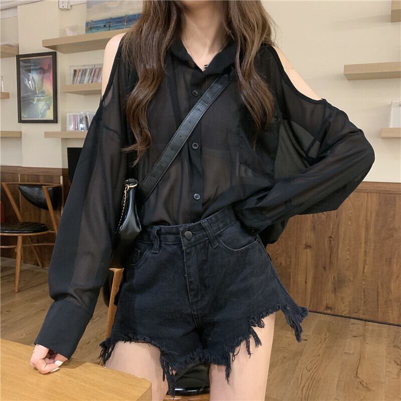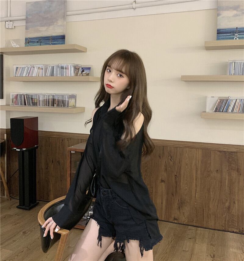 ✞ ストラップレス♥カワイイ♥シフォンシャツブラウスジャケット ✞ゴスロリ SM ミリ 甘ロリ クラロリ 和ロリ エレガント 黒ロリ 姫ロリ 華ロリ BB-BB5022727