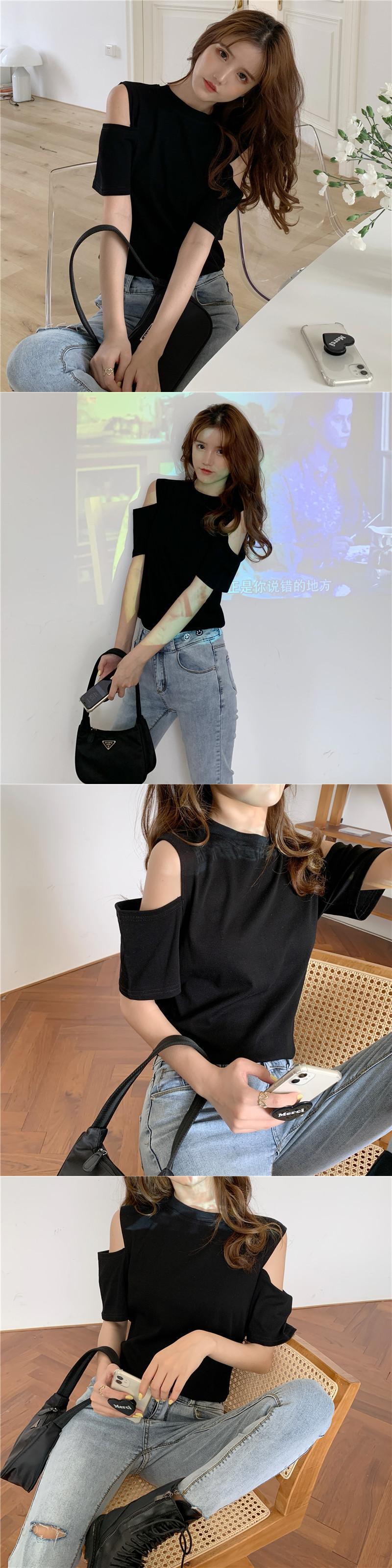 ✞ Tシャツ シャツブラウスラウンドネックベーシックソリッド カラープルオーバー ストラップレス半袖スリーブ ショート ソリッドカラー ✞ゴスロリ SM ミリ 甘ロリ クラロリ 和ロリ エレガント 黒ロリ 姫ロリ 華ロリ BB-BB5817349