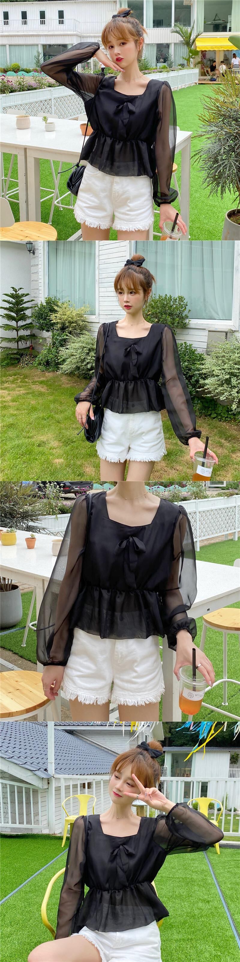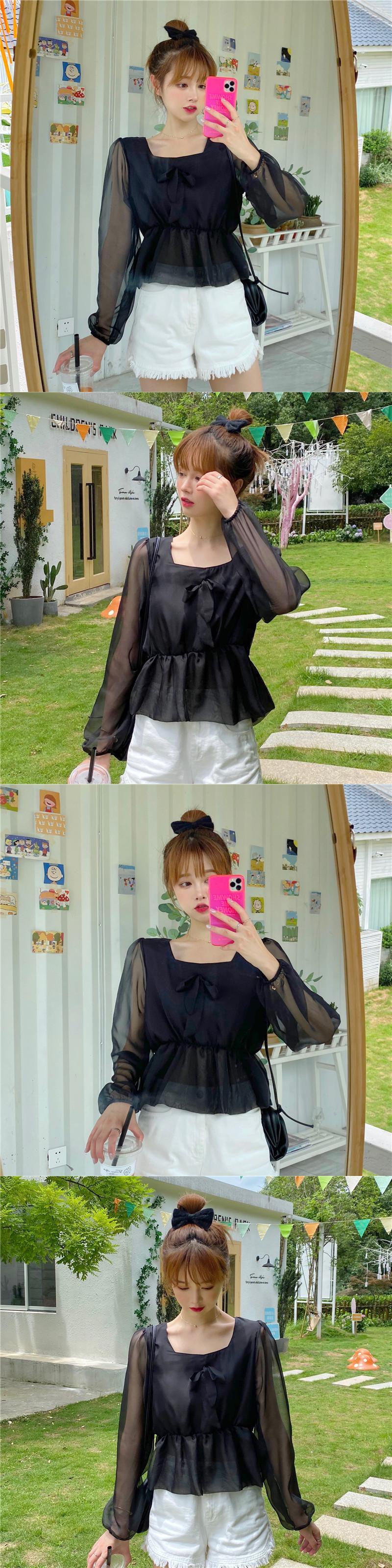 ✞ シャツブラウス♥カワイイ♥リボンウエストすっきり☆着痩せスリーブ長袖 ロング スウィート スクウェア ✞ゴスロリ SM ミリ 甘ロリ クラロリ 和ロリ エレガント 黒ロリ 姫ロリ 華ロリ BB-BB7875868