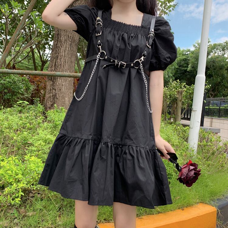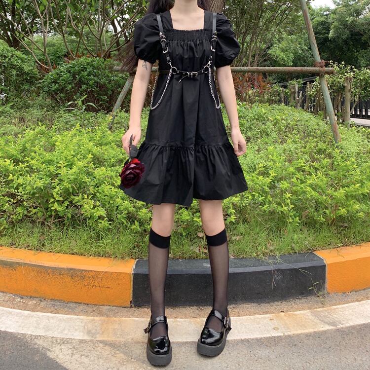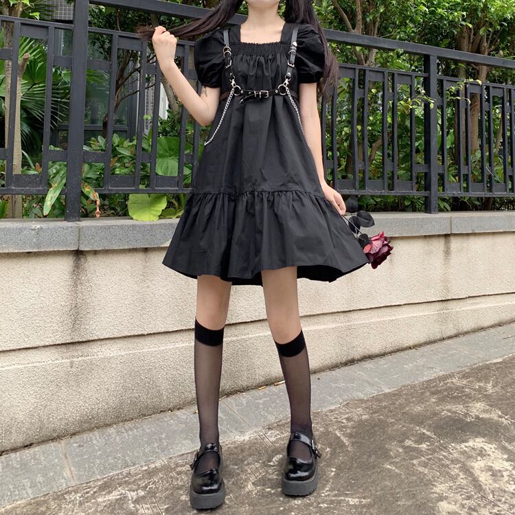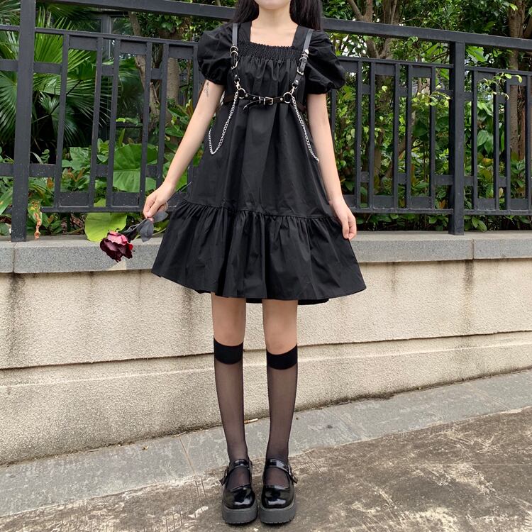 ✞ スタンダードダークブラックプリーツスリーブウエストすっきり☆着痩せ♥カワイイ♥ レトロ スクウェア ✞ゴスロリ SM ミリ 甘ロリ クラロリ 和ロリ エレガント 黒ロリ 姫ロリ 華ロリ BB-BB9462870