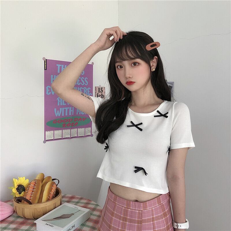 ✞ Tシャツ 半袖スリーブプルオーバー スリムラウンドネックコート ショート リボン スウィート ガーリー ✞ゴスロリ SM ミリ 甘ロリ クラロリ 和ロリ エレガント 黒ロリ 姫ロリ 華ロリ BB-BB5484025