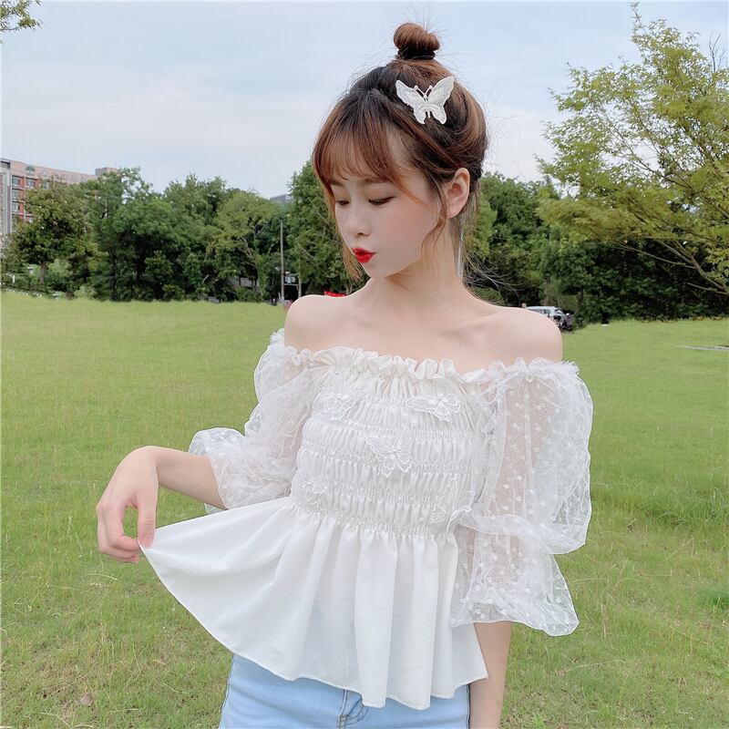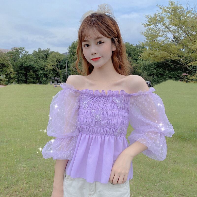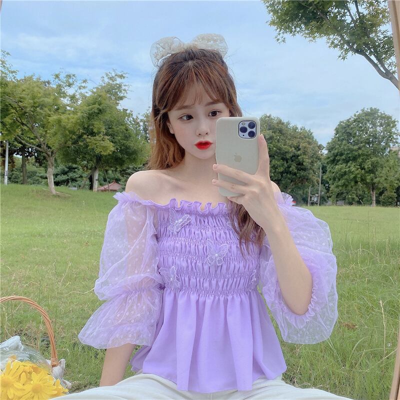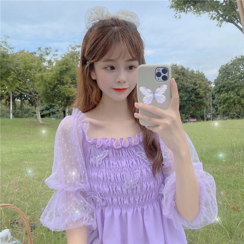 ✞ Butterflyデザイン メッシュスリーブプリーツスリムショートシャツブラウス スウィート スクウェア ステッチ ✞ゴスロリ SM ミリ 甘ロリ クラロリ 和ロリ エレガント 黒ロリ 姫ロリ 華ロリ BB-BB9573220