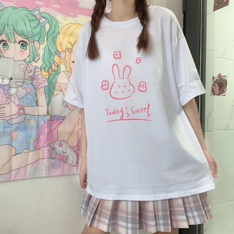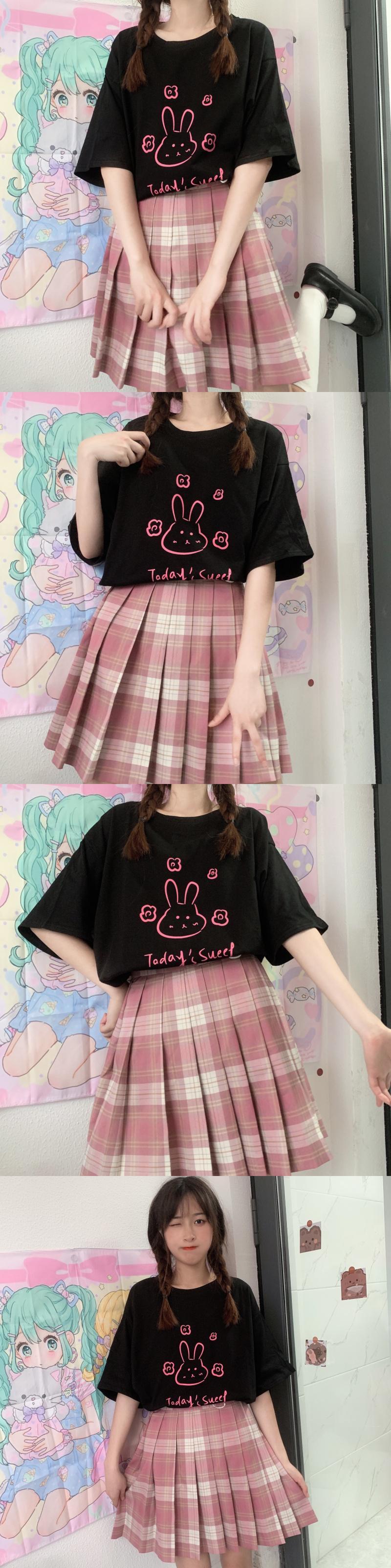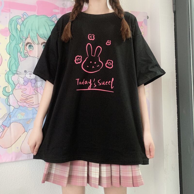 ✞ キュート♥うさぎTシャツ プリントラウンドネックトップス スウィート ガーリー ✞ゴスロリ SM ミリ 甘ロリ クラロリ 和ロリ エレガント 黒ロリ 姫ロリ 華ロリ BB-BB4006356