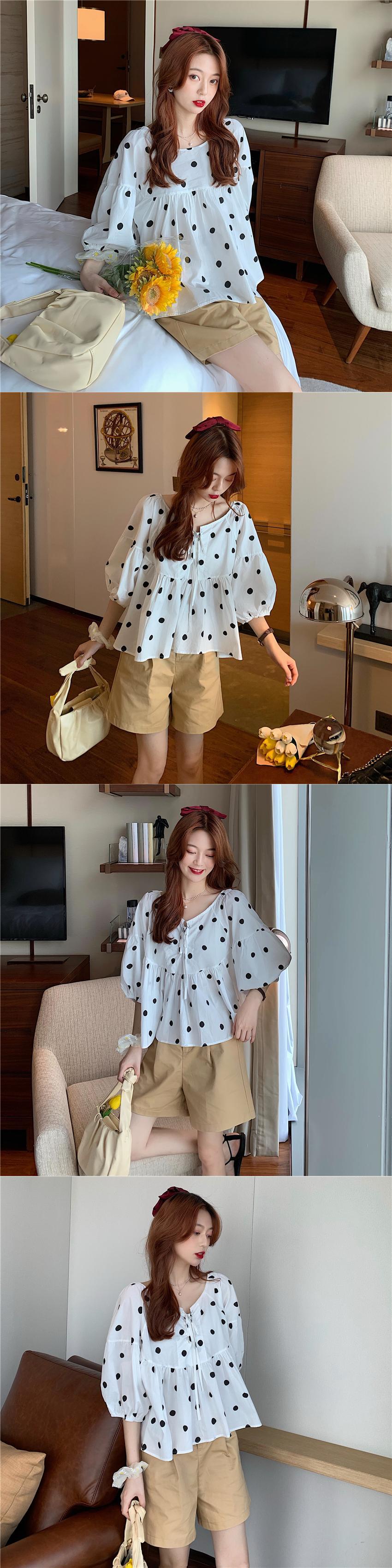 ✞ レースシャツブラウスラウンドネック水玉スリーブ ランタンスリーブ スウィート ガーリー ✞ゴスロリ SM ミリ 甘ロリ クラロリ 和ロリ エレガント 黒ロリ 姫ロリ 華ロリ BB-BB6197577