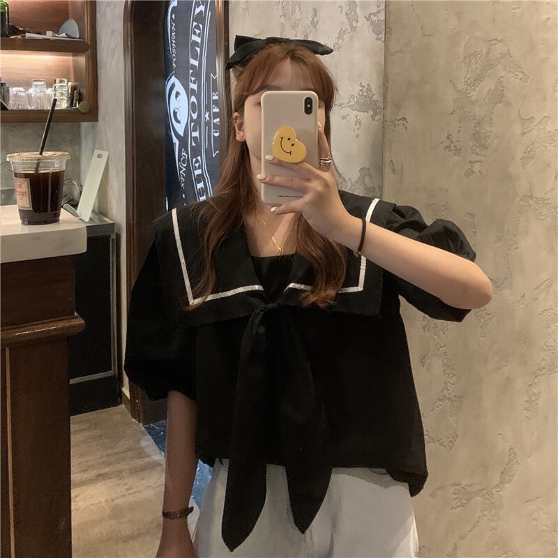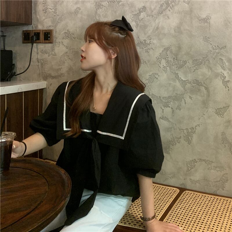 ✞ きれいめ☆ネイビースリーブシャツブラウスリボン大人女子☆ スウィート ガーリー ✞ゴスロリ SM ミリ 甘ロリ クラロリ 和ロリ エレガント 黒ロリ 姫ロリ 華ロリ BB-BB6620698