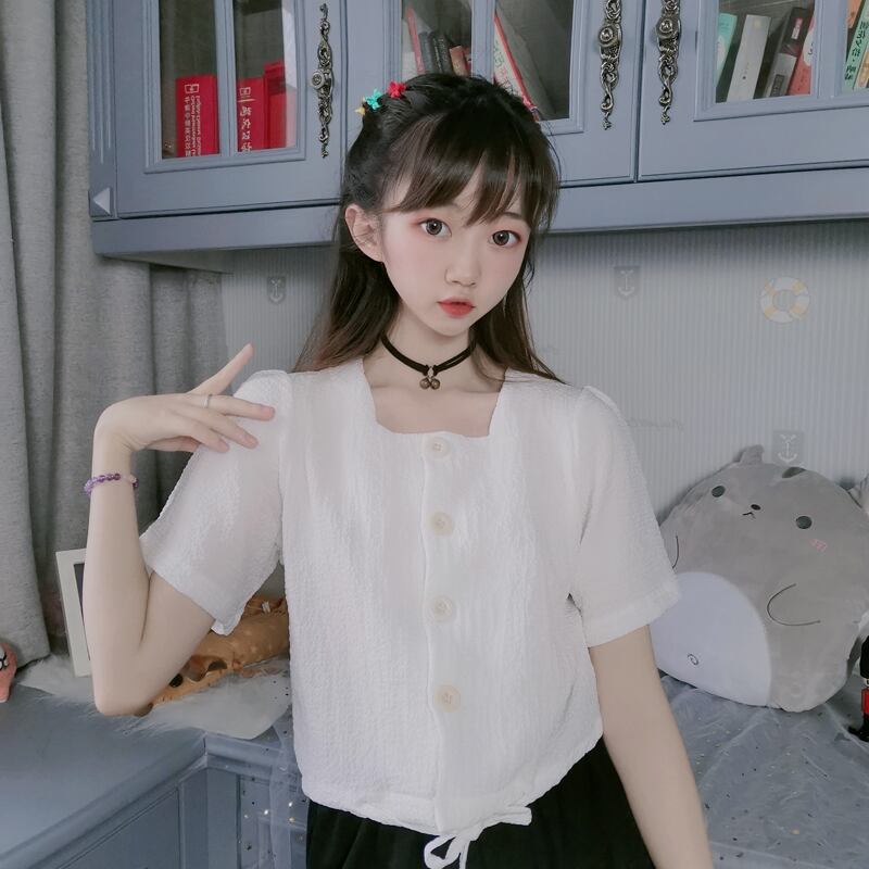 ✞ きれいめ☆ショートシャツブラウスギャザー スウィート スクウェア ✞ゴスロリ SM ミリ 甘ロリ クラロリ 和ロリ エレガント 黒ロリ 姫ロリ 華ロリ BB-BB4618771