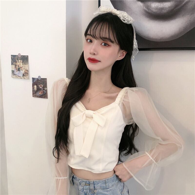 ✞ メッシュスリーブリボンスリムショートシャツブラウス ベルスリーブ スウィート スクウェア ✞ゴスロリ SM ミリ 甘ロリ クラロリ 和ロリ エレガント 黒ロリ 姫ロリ 華ロリ BB-BB7741711