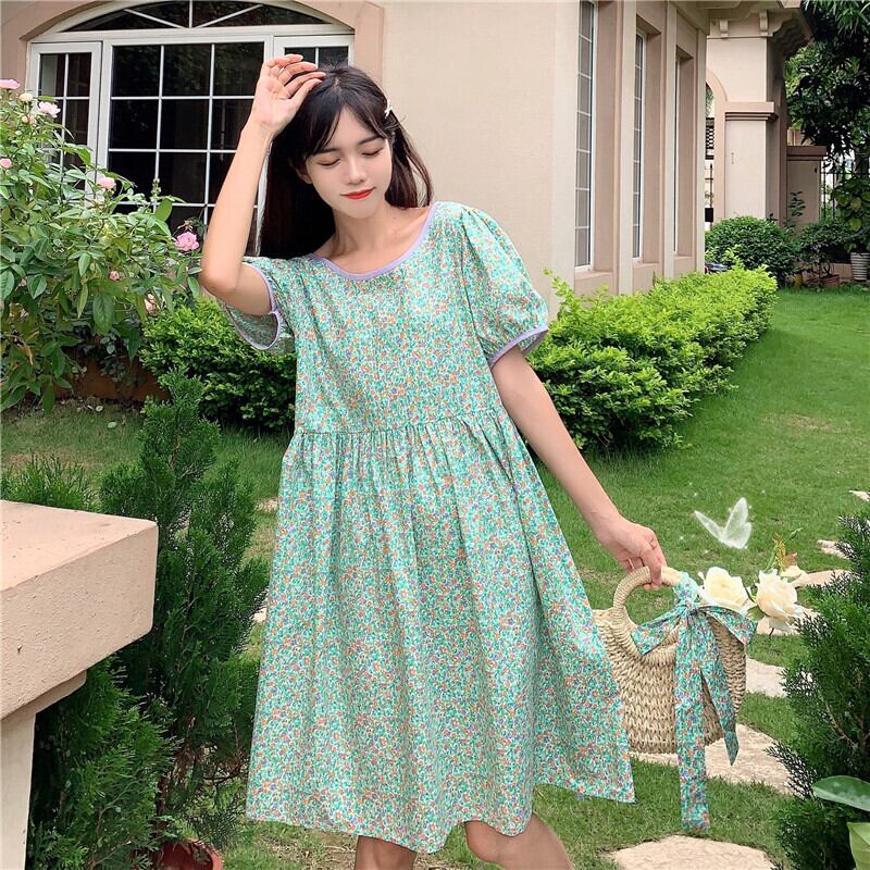 ✞ スタンダード花柄ロングウエストすっきり☆着痩せスリーブラウンドネックスカート レトロ スウィート ✞ゴスロリ SM ミリ 甘ロリ クラロリ 和ロリ エレガント 黒ロリ 姫ロリ 華ロリ BB-BB0593761