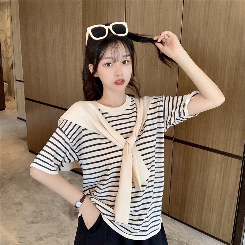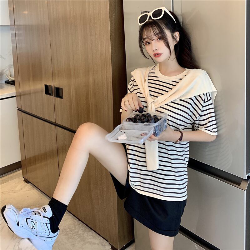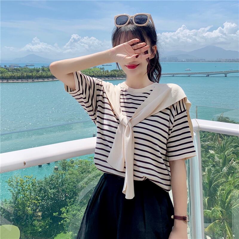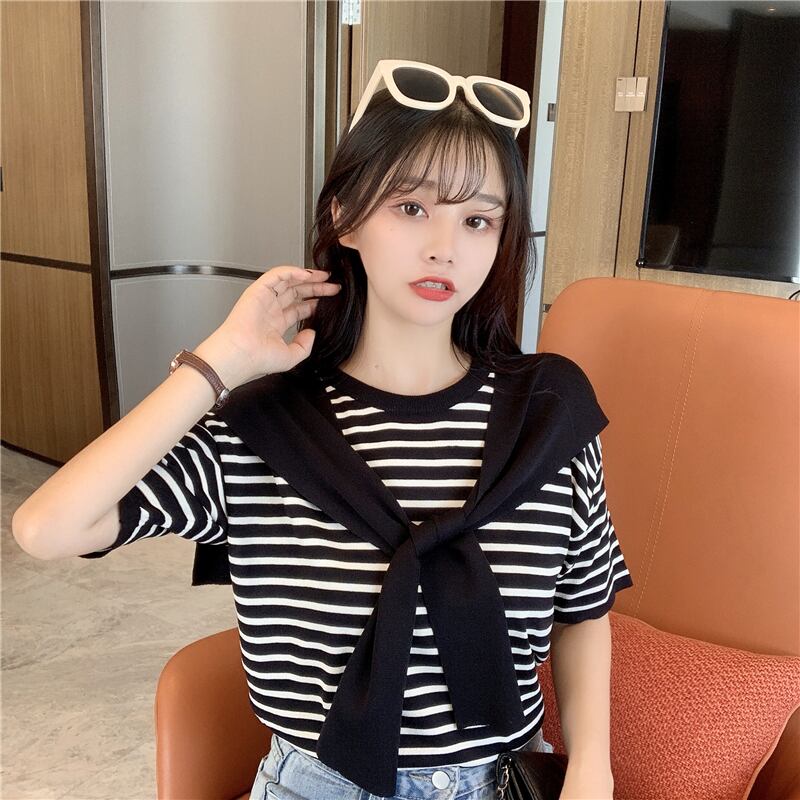✞ ボーダーTシャツ ☆ストライプ 黒ネイビーxホワイト or アプリコットネイビーxホワイト トップス✞ゴスロリ SM ミリ 甘ロリ クラロリ 和ロリ エレガント 黒ロリ 姫ロリ 華ロリ BB-BB9871459
