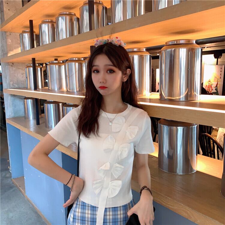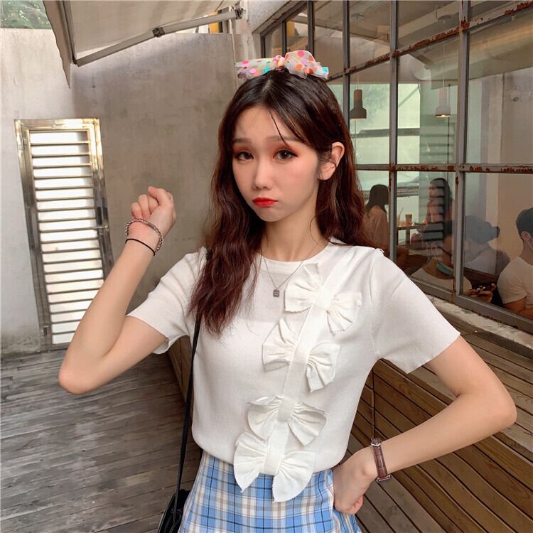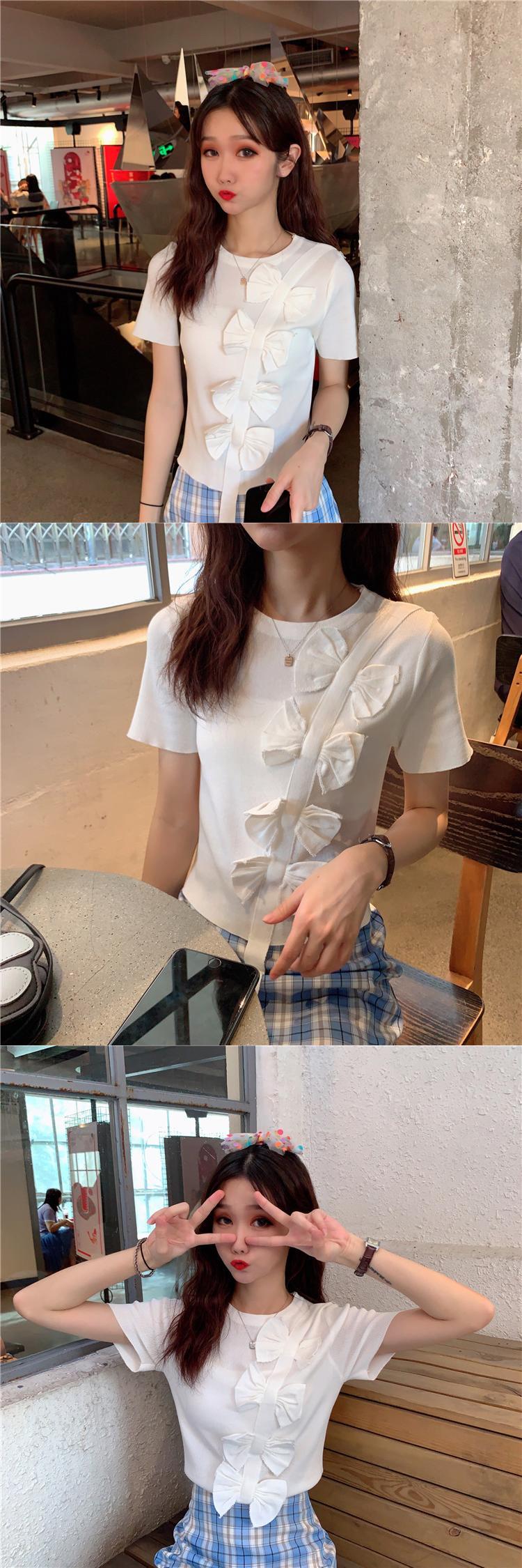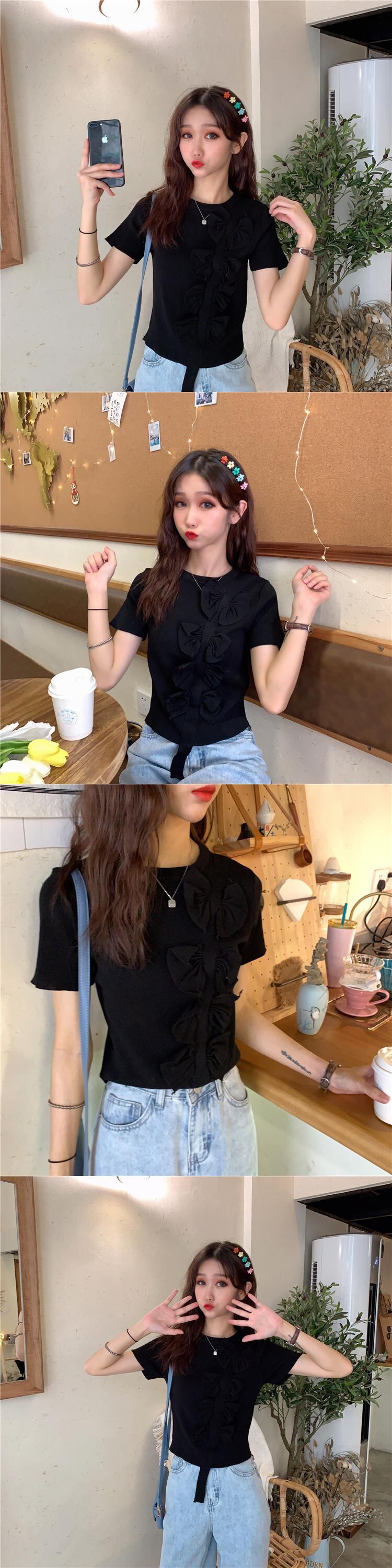 ✞ リボンラウンドネックスリムショートニットトップス スウィート ✞ゴスロリ SM ミリ 甘ロリ クラロリ 和ロリ エレガント 黒ロリ 姫ロリ 華ロリ BB-BB1363250