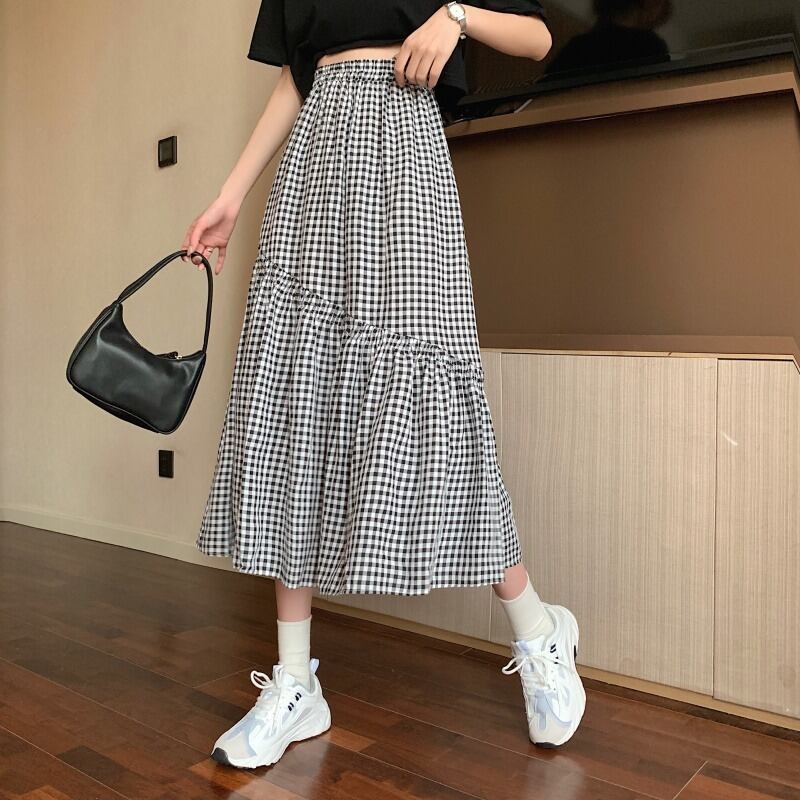 ✞ スカート ♥カワイイ♥スタンダードAラインチェック柄 ロング レトロ ✞ゴスロリ SM ミリ 甘ロリ クラロリ 和ロリ エレガント 黒ロリ 姫ロリ 華ロリ BB-BB6601375