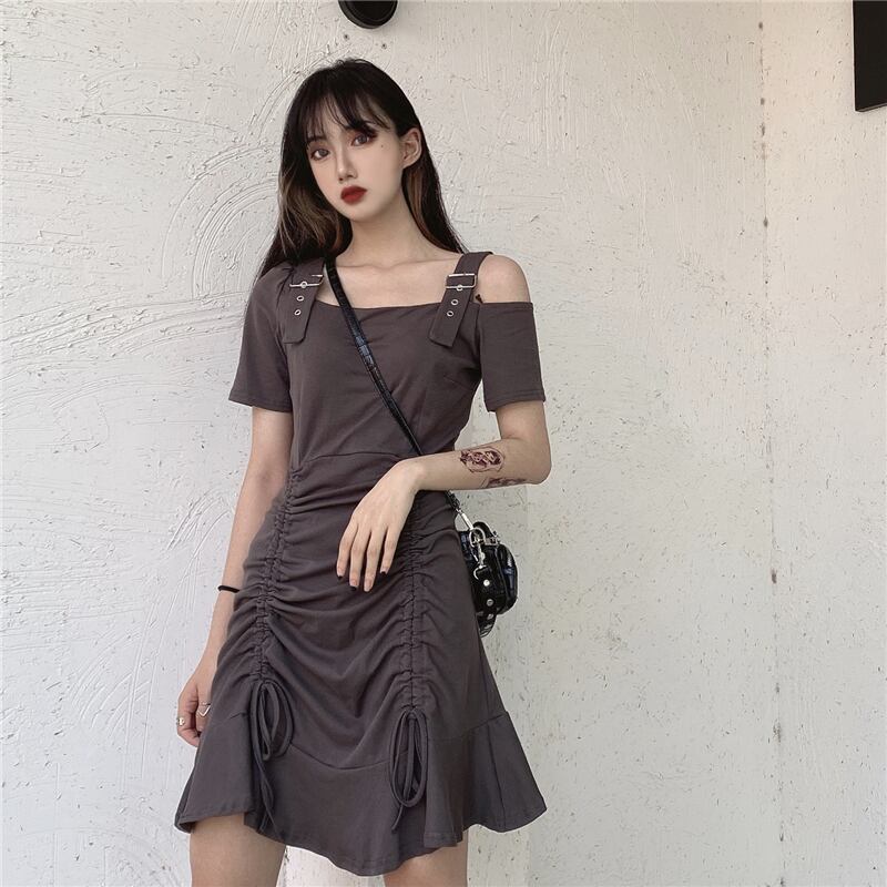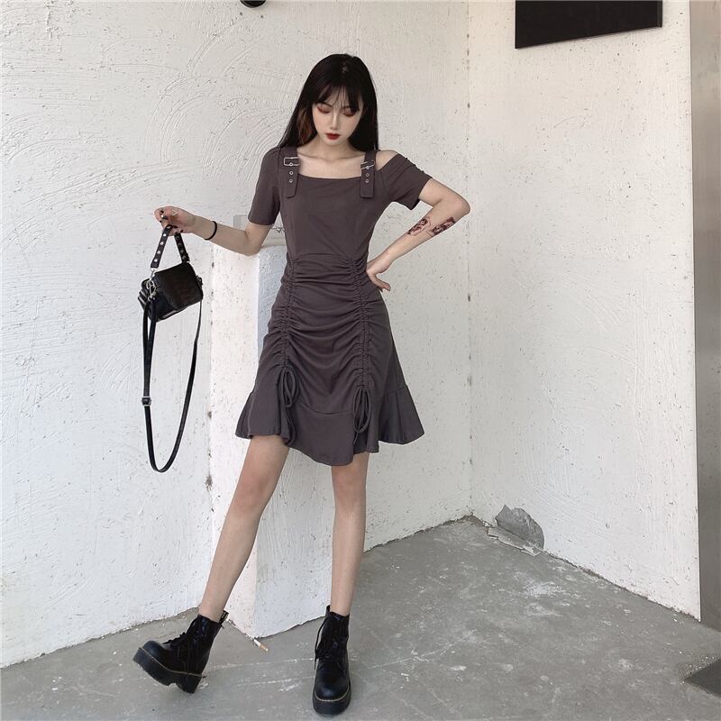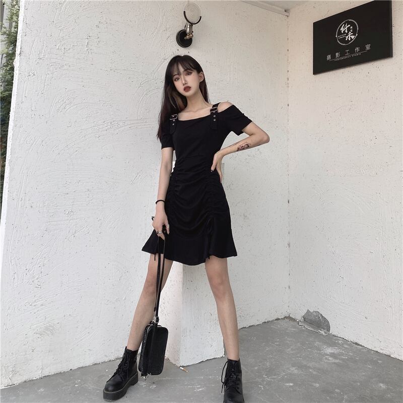 ✞ サマーきれいめ☆ダークスリムギャザー 夏物 オフショルダー ✞ゴスロリ SM ミリ 甘ロリ クラロリ 和ロリ エレガント 黒ロリ 姫ロリ 華ロリ BB-BB5114699
