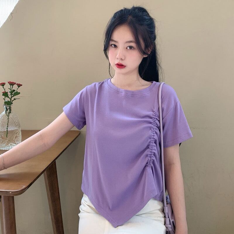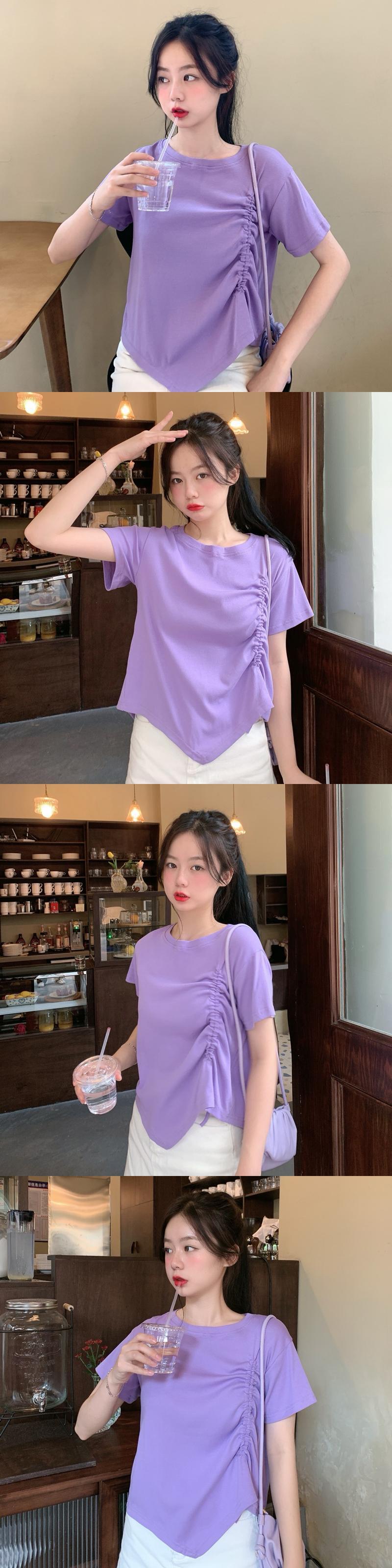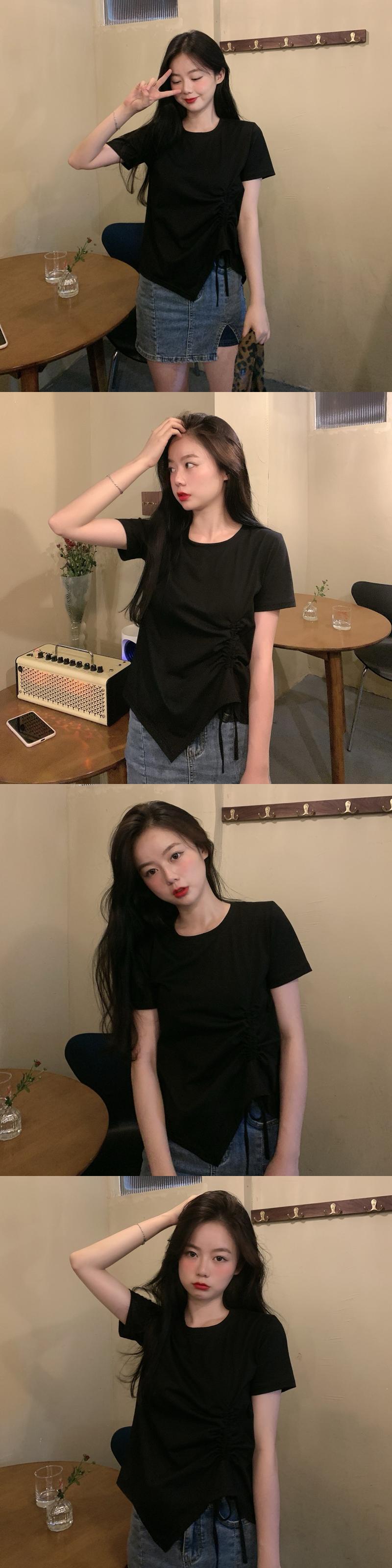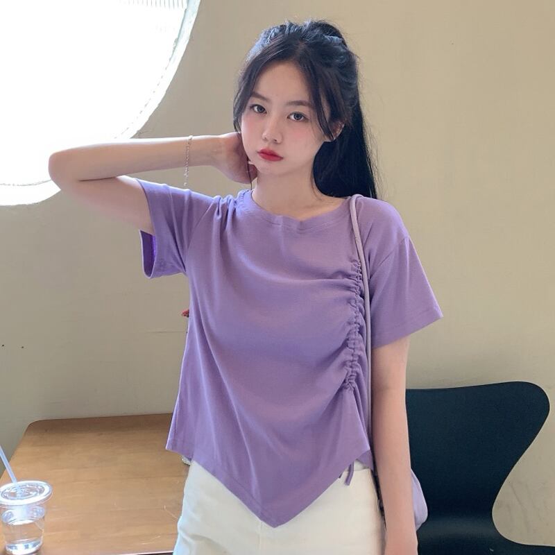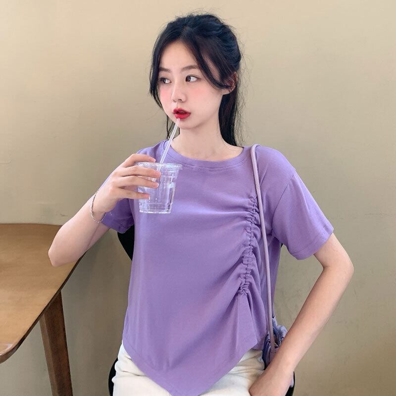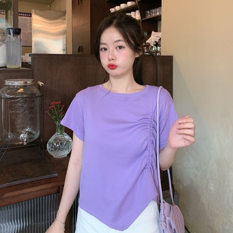 ✞ Tシャツ ソリッド カラーギャザーショートトップス スウィート ソリッドカラー ✞ゴスロリ SM ミリ 甘ロリ クラロリ 和ロリ エレガント 黒ロリ 姫ロリ 華ロリ BB-BB8235012