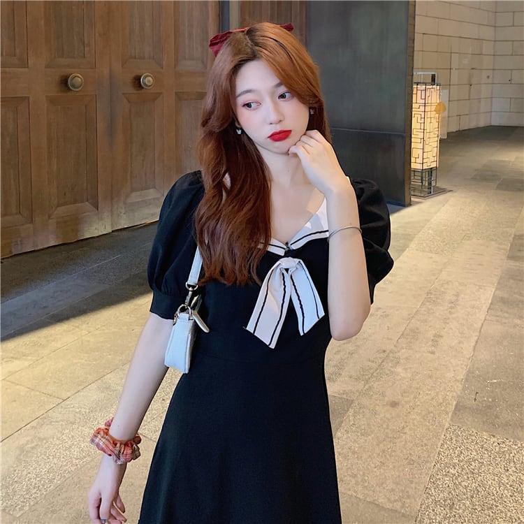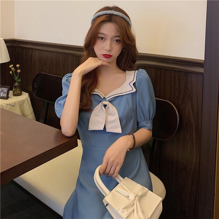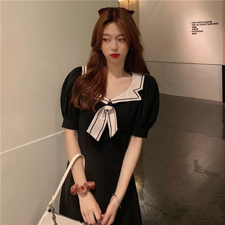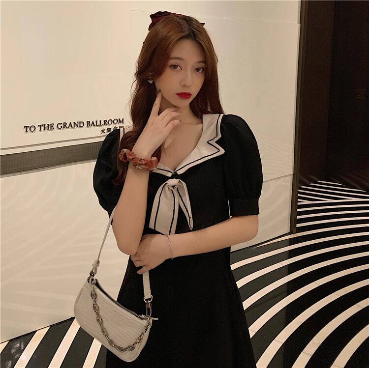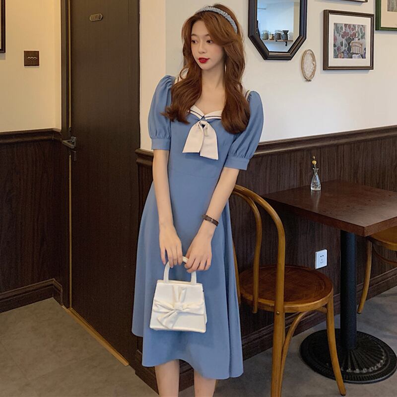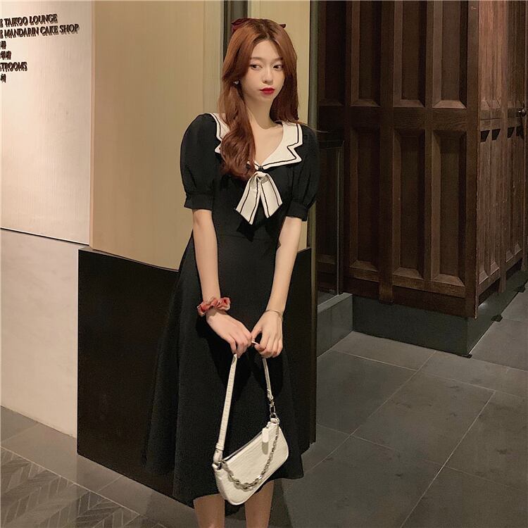 ✞ 花柄スリーブロングひざ丈ワンピースOP ネイビーきれいめ☆スカート スウィート フラワーデザイン ✞ゴスロリ SM ミリ 甘ロリ クラロリ 和ロリ エレガント 黒ロリ 姫ロリ 華ロリ BB-BB8354617