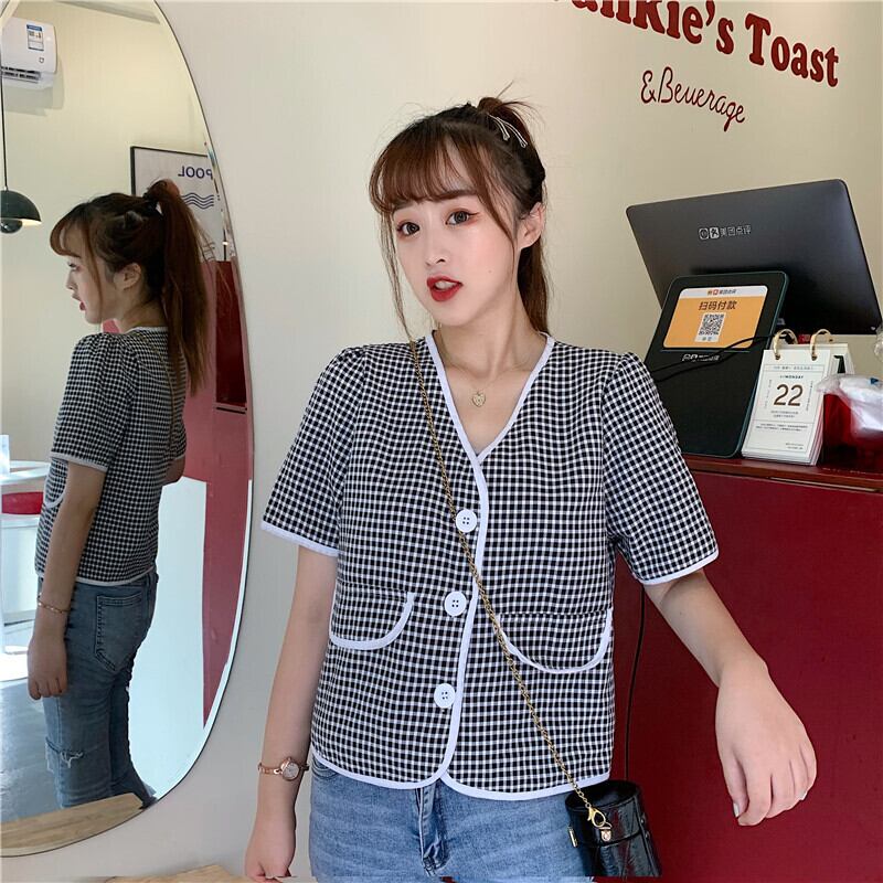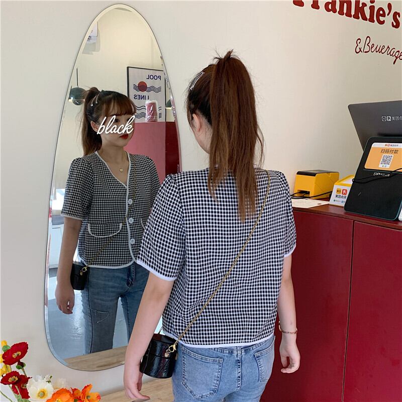 ✞ シャツブラウス大人女子☆スリーブショートチェック柄 スウィート ガーリー ✞ゴスロリ SM ミリ 甘ロリ クラロリ 和ロリ エレガント 黒ロリ 姫ロリ 華ロリ BB-BB8309679