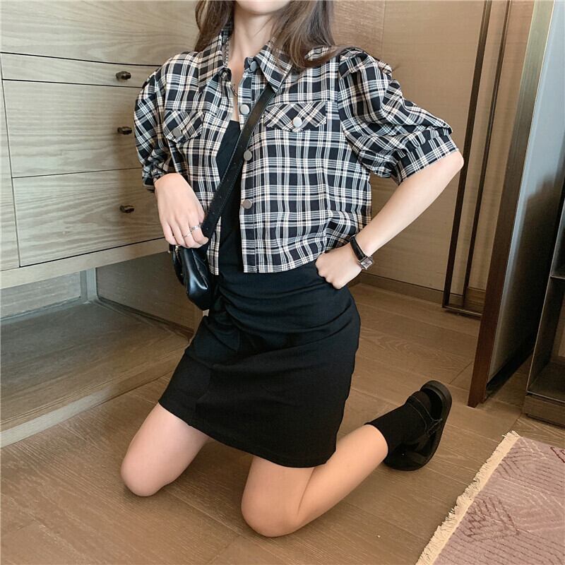 色:ブラックワンピース,ブラックチェックジャケットジャケット