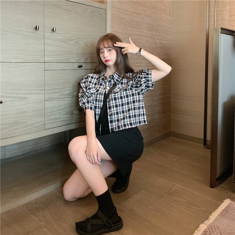 ✞ スタンダードスリーブチェック柄シャツブラウスジャケット レトロ ✞ゴスロリ SM ミリ 甘ロリ クラロリ 和ロリ エレガント 黒ロリ 姫ロリ 華ロリ BB-BB0050827