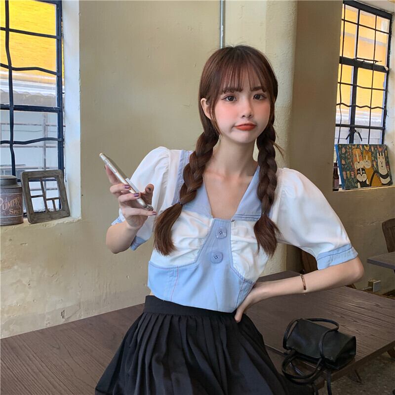 ✞ スリーブショートVネックシャツブラウス スウィート ガーリー ステッチ ✞ゴスロリ SM ミリ 甘ロリ クラロリ 和ロリ エレガント 黒ロリ 姫ロリ 華ロリ BB-BB8461659