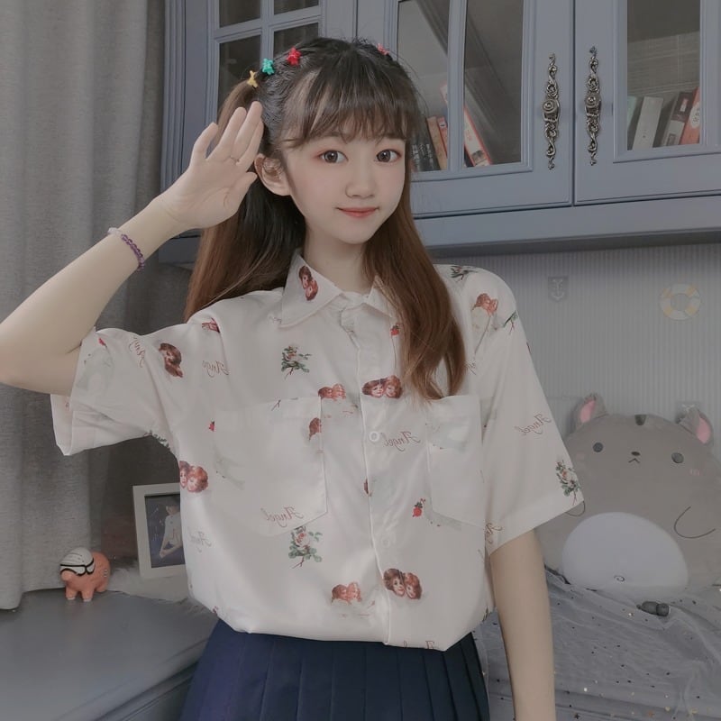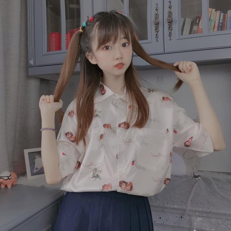 ✞ きれいめ☆スタンダードプリント柄シャツブラウストップス レトロ スウィート ✞ゴスロリ SM ミリ 甘ロリ クラロリ 和ロリ エレガント 黒ロリ 姫ロリ 華ロリ BB-BB5627713