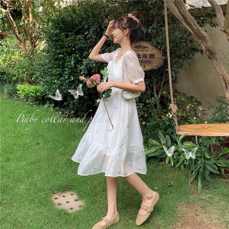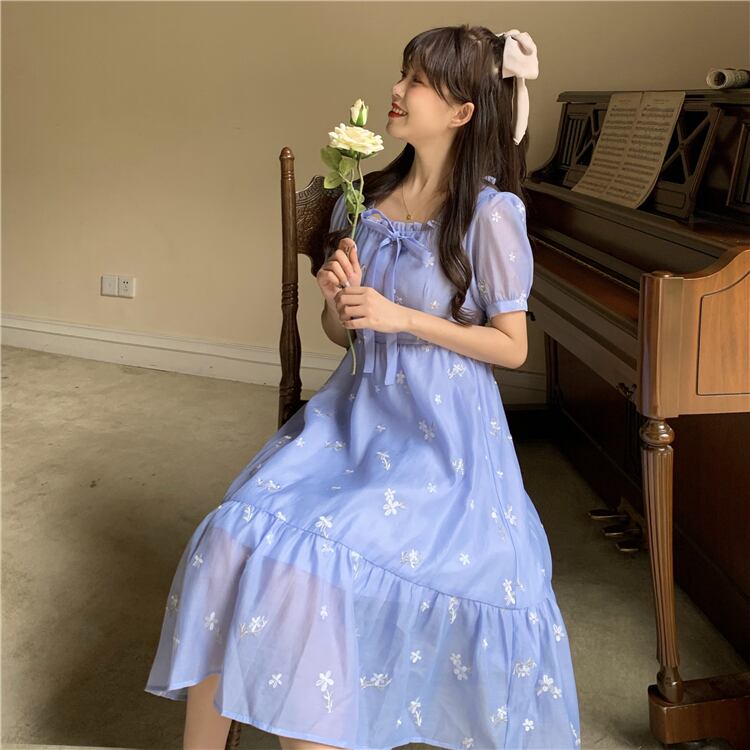 ✞ リボンレース花柄刺繍半袖スリーブ ショート スウィート フラワーデザイン スクウェア ✞ゴスロリ SM ミリ 甘ロリ クラロリ 和ロリ エレガント 黒ロリ 姫ロリ 華ロリ BB-BB8032743