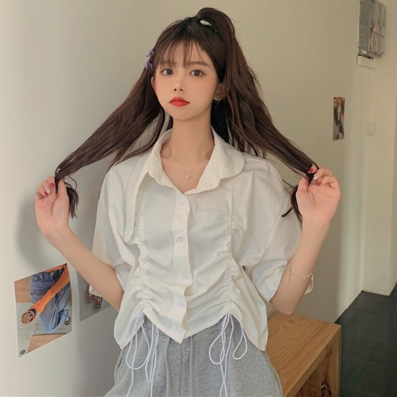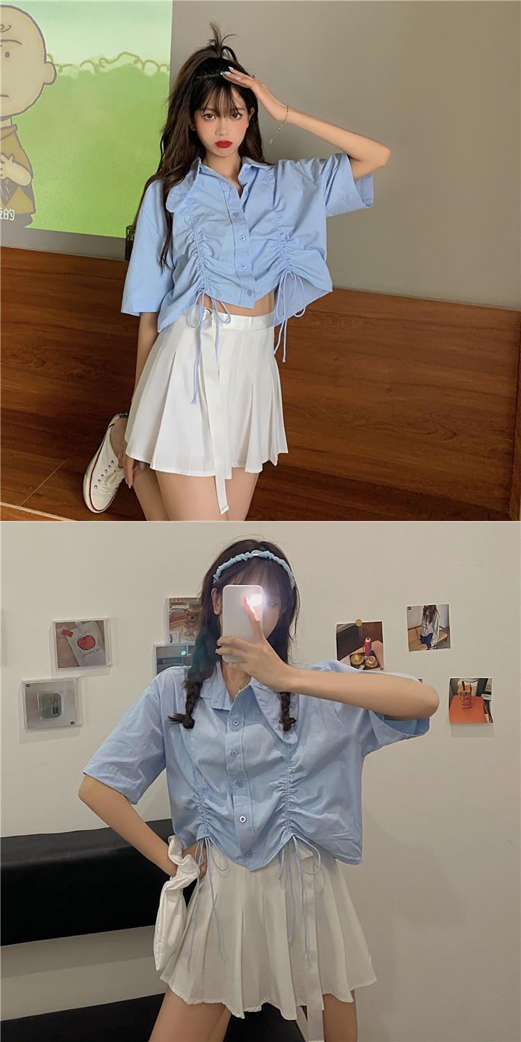 ✞ シャツブラウスギャザーショートシフォントップス スウィート ✞ゴスロリ SM ミリ 甘ロリ クラロリ 和ロリ エレガント 黒ロリ 姫ロリ 華ロリ BB-BB4353336