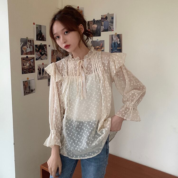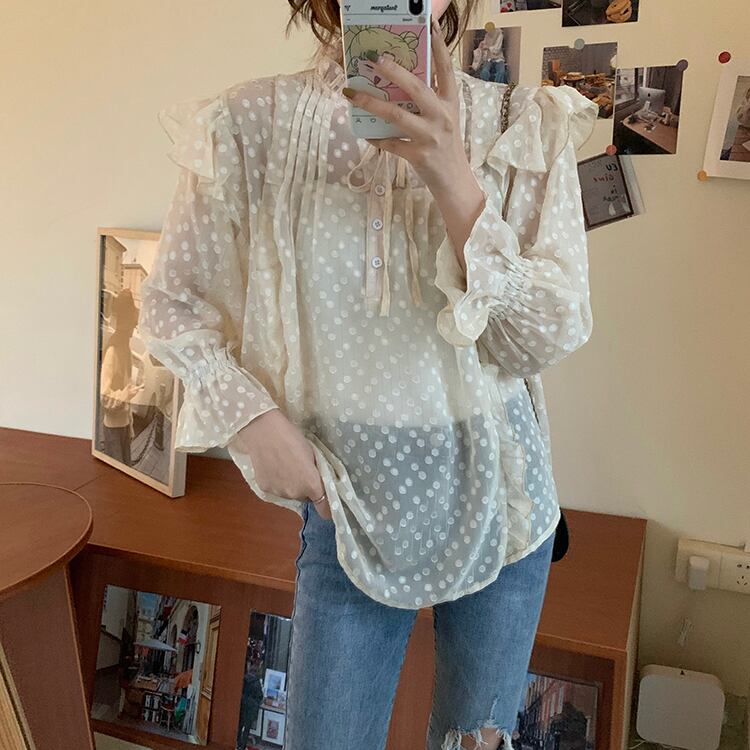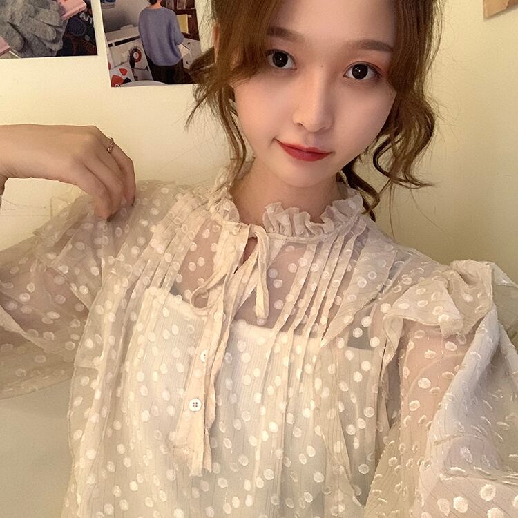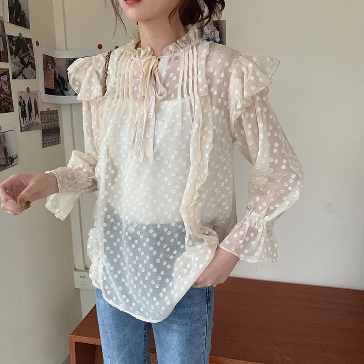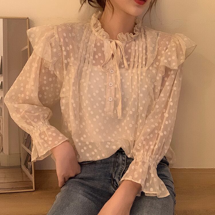 ✞ シフォンシャツブラウスレースラウンドネックラッフルスリーブ スウィート ステッチ ✞ゴスロリ SM ミリ 甘ロリ クラロリ 和ロリ エレガント 黒ロリ 姫ロリ 華ロリ BB-BB5748087
