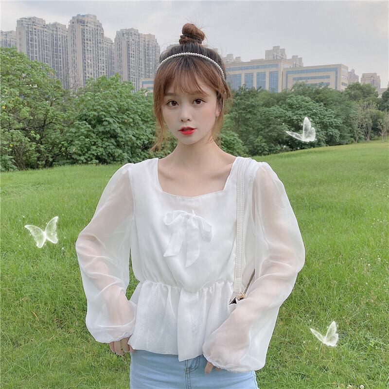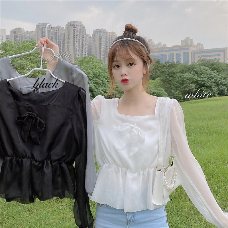 ✞ リボン♥カワイイ♥ウエストすっきり☆着痩せショートシャツブラウス ランタンスリーブ スウィート スクウェア ステッチ ✞ゴスロリ SM ミリ 甘ロリ クラロリ 和ロリ エレガント 黒ロリ 姫ロリ 華ロリ BB-BB7047965